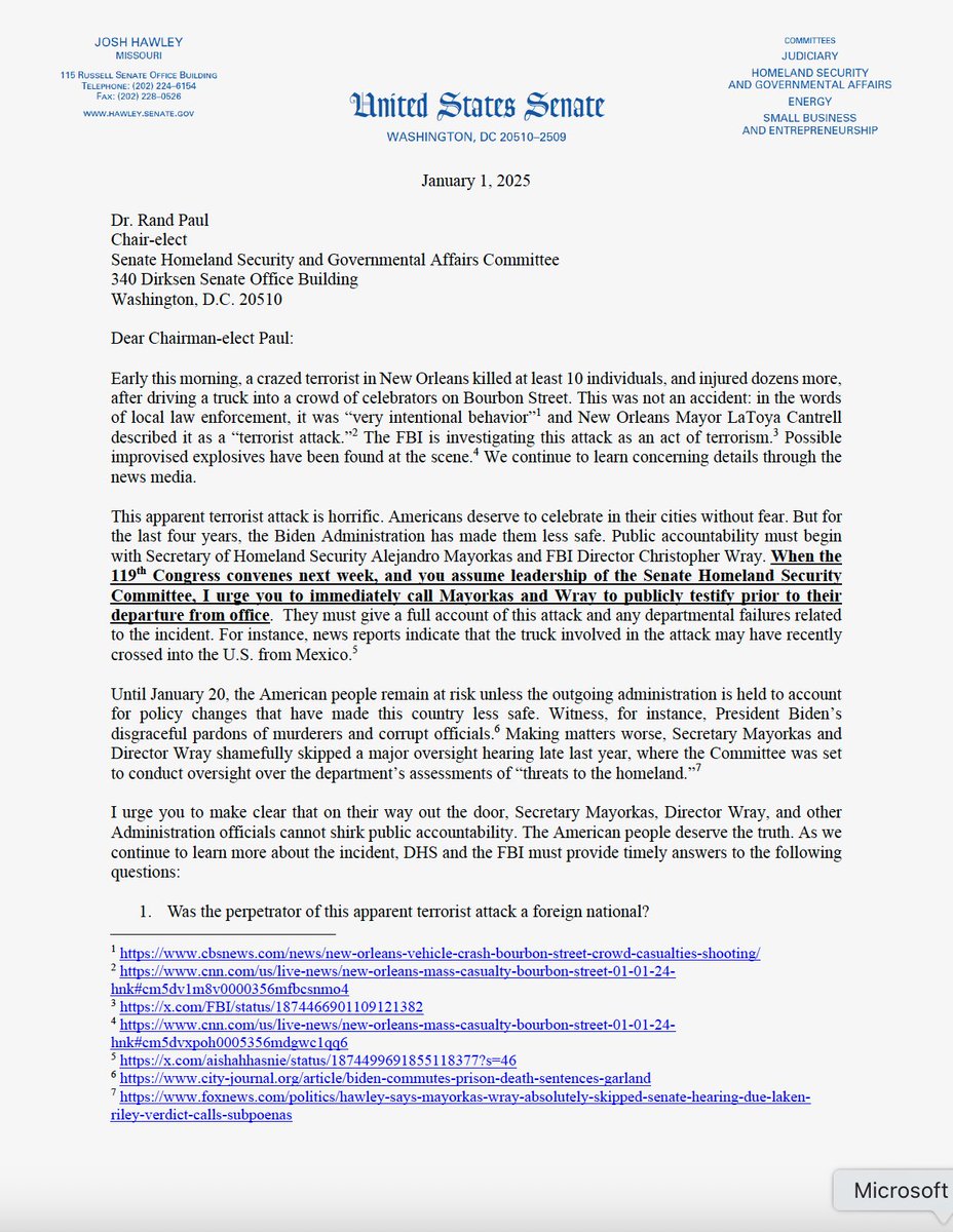 The Senate should demand the public testimony of Alejandro Mayorkas and FBI Director Wray immediately. That duo has been skipping out on hearings for months. Now there’s been a deadly attack on American soil. They need to provide answers https://t.co/aiaTWX20PN