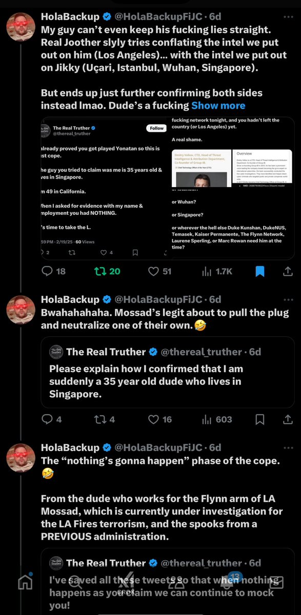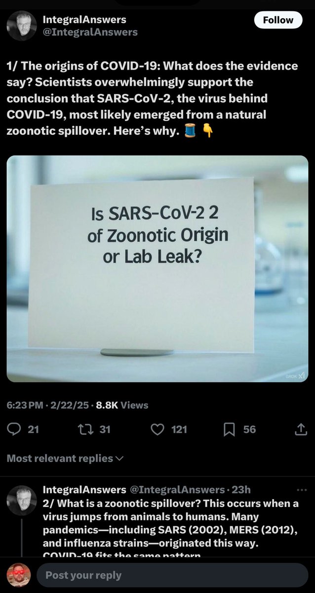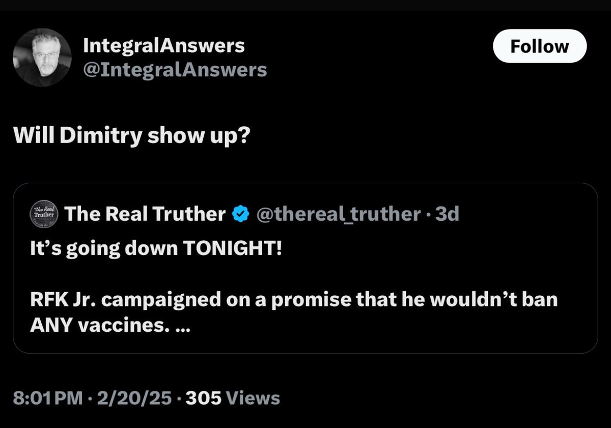 THEY. JUST. CAN’T. HELP. THEMSELVES. (🤣🤣🤣) *So there I was, perusing a “Coronavirus” list of ‘experts’ on TwitterX, as one does, and I stumble across this juicy little nugget from @IntegralAnswers, posted yesterday at 6:23 pm CST: “The origins of COVID-19: What does the evidence say? Scientists overwhelmingly support the conclusion that SARS-CoV-2, the virus behind COVID-19, most likely emerged from a natural zoonotic spillover. Here’s why.🧵👇” *NOTE: The post above had been quoted by Peter Openshaw, one of the members of this “Coronavirus” group, right under what looks to be a Peter Hotez alt account (lol) that repeatedly shills his “Vaccines Didn’t Cause Rachel’s (Hotez’s daughter) Autism” book and gives him the chance to retweet himself (lmao). Peter Openshaw added his own caption to the “quote post”, which read: “Excellent thread explaining the overwhelming evidence favoring a natural origin of #SARSCoV2. There’s no similar body of work to support a possible lab origin.” (Referring to the thread by @IntegralAnswers.) In addition to being embarrassed for these fucking genocidal charlatans still trying to push the long-discredited “zoonotic COVID origins” horseshit, I also remembered the “IntegralAnswers” account seemed oddly familiar to me recently for another reason. *So that’s when I scrolled his feed for just a second and came across this little nugget I remembered seeing him quietly post three days ago, on 2/20/2025 at 8:01 pm CST: “Will Dmitry show up?” Yep, you guessed it. IntegralAnswers was directly quoting our recently-exposed ‘CIA Counter Mouse Army’ homie, Real Truther (Dmitry), to add some passive aggro “that’s not him” interference. What a fucking time to be alive, sports fans.🤣