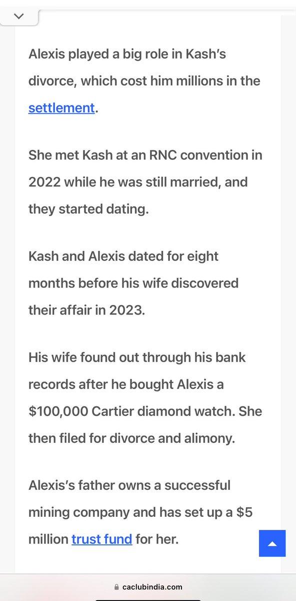 FBI DIRECTOR: So, has Kash Patel’s girlfriend, Alexis Wilkins, always been an IDF Unit 8200 honeypot spy? Or was that just when she was breaking up Kash’s marriage and she’s totally done with that phase now? Lol, Kash bought her a $100,000 diamond watch before he and his wife were even divorced? First off, where the fuck did KASH get that kinda cash to spend on a WATCH for the honeypot they just swarmed you with at the RNC? Born in Boston, spent her early childhood in England and Switzerland. Because of course she did. *PragerU (Unit 8200) *TPUSA (Apollo Global Management/Mossad) *Father owns a successful mining company? Is it anything like RIO TINTO, where Apollo has a 30% stake? Asking for America. (Apollo = Mossad and Jeffrey Epstein associates.)