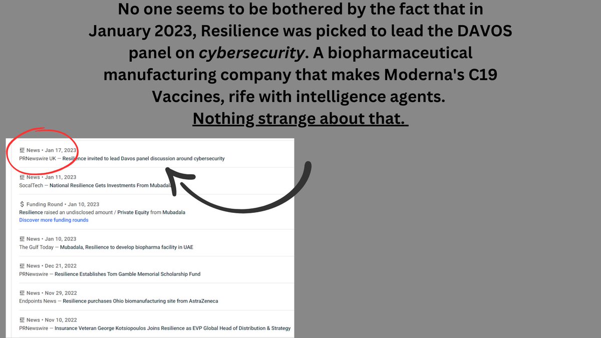 10/10 🧵 To top it all off, Resilience was just picked in January 2023 to lead the DAVOS panel on cybersecurity. A biopharmaceutical company 🤔on cyber security? Ok sure, go get that Moderna Booster! - if you dare. *mic drop*
