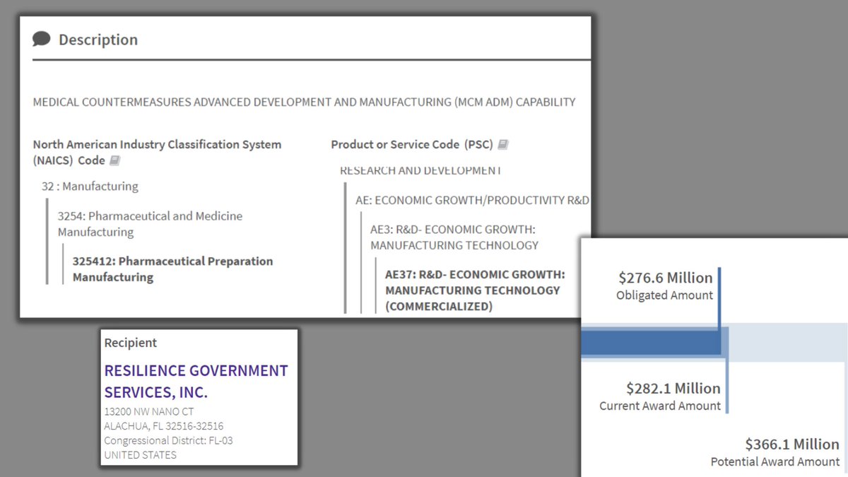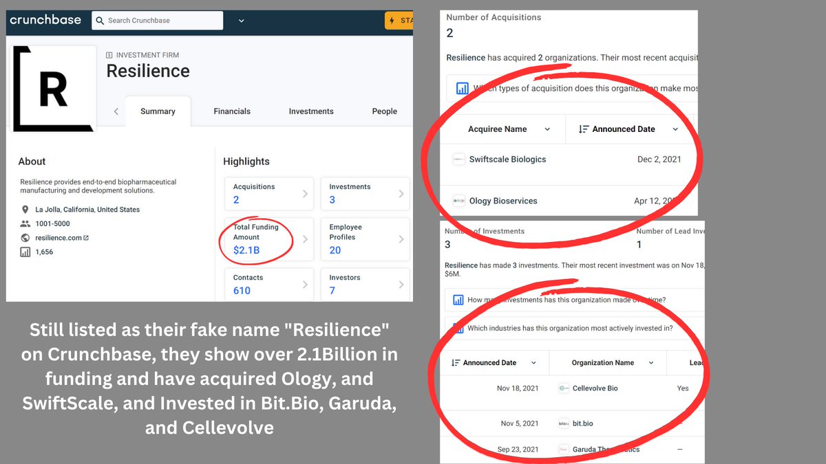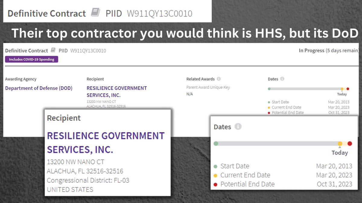 3/10 🧵Despite what crunchbase, or even http://USAspending.gov initially claims, Resilience wasn't founded in 2020, it was renamed. Also, it wasn't just worth 32.1 Million( usaspending) in government contracts, but closer to $2.1 Billion.
