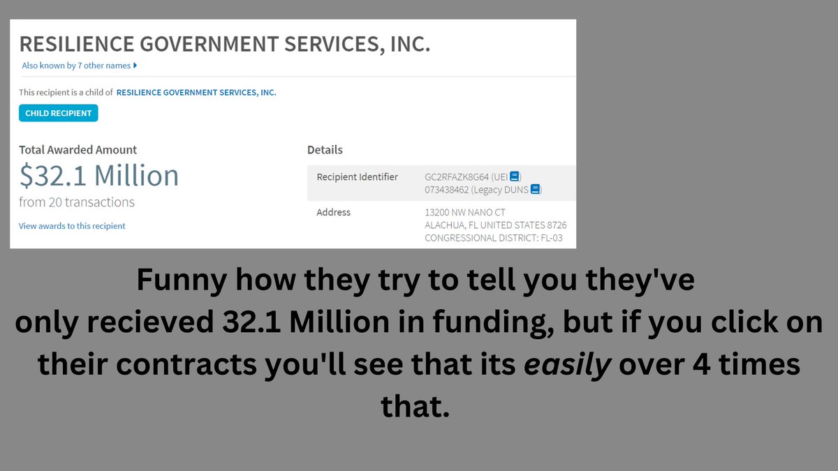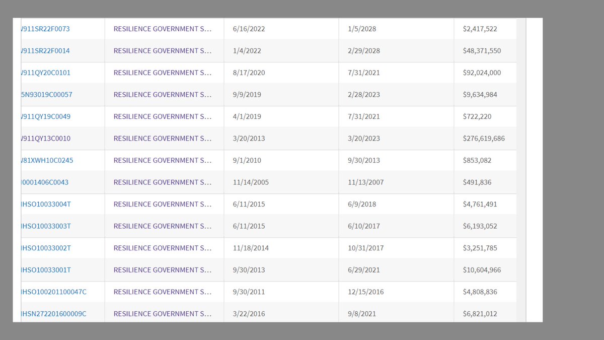 2/10 🧵 Turns out that although that is correct, National Resilience wasn't its true name and wasn't truly new either. According to http://USAspending.gov their name is Resilience Government Services Inc.
