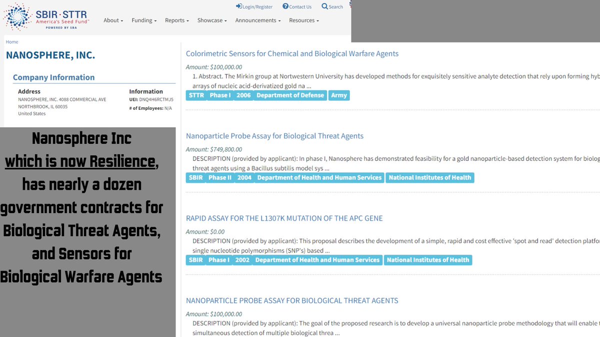 9/10 🧵 Also, Nanosphere and Nanotherapeutics AKA Resilience has countless contracts with the government concerning Biological Warfare, and gene specific sensors wanted by the DoD.