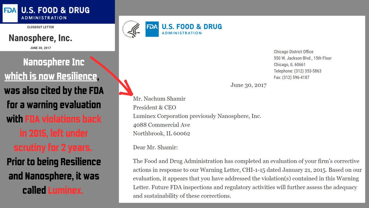 8/10🧵 Nanosphere (Resilience) in 2015-2017 had FDA violations and given multiple warnings. Luckily for Resilience, former FDA commissioner, Scott Gottlieb sits on their board so no worries about the quality, right?!