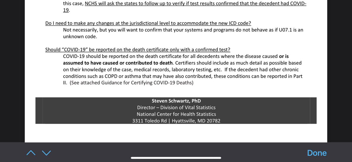 @P_McCulloughMD @DrJBhattacharya @JohnBeaudoinSr In March & April of 2020 the CDC went rogue. They issued changes to how death certificate reporting was to be done but only for COVID... And WITHOUT reporting these proposed changes to the Federal Register for oversight and public comment! The CDC broke our laws!