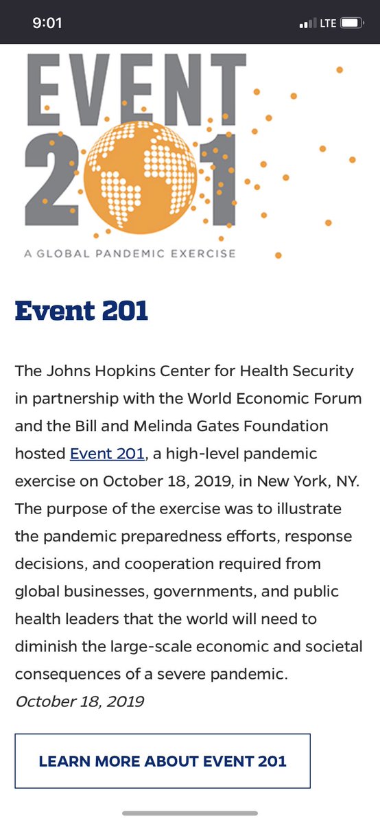 @P_McCulloughMD So you whip the public into a panic with a Hoax based upon outlandish predictions... You know you're ready to go because China & the US DoD is thumbs up, and Johns Hopkins University hosts Event 201... Who funded it? Oh yeah Bill Gates. https://centerforhealthsecurity.org/our-work/tabletop-exercises/event-201-pandemic-tabletop-exercise