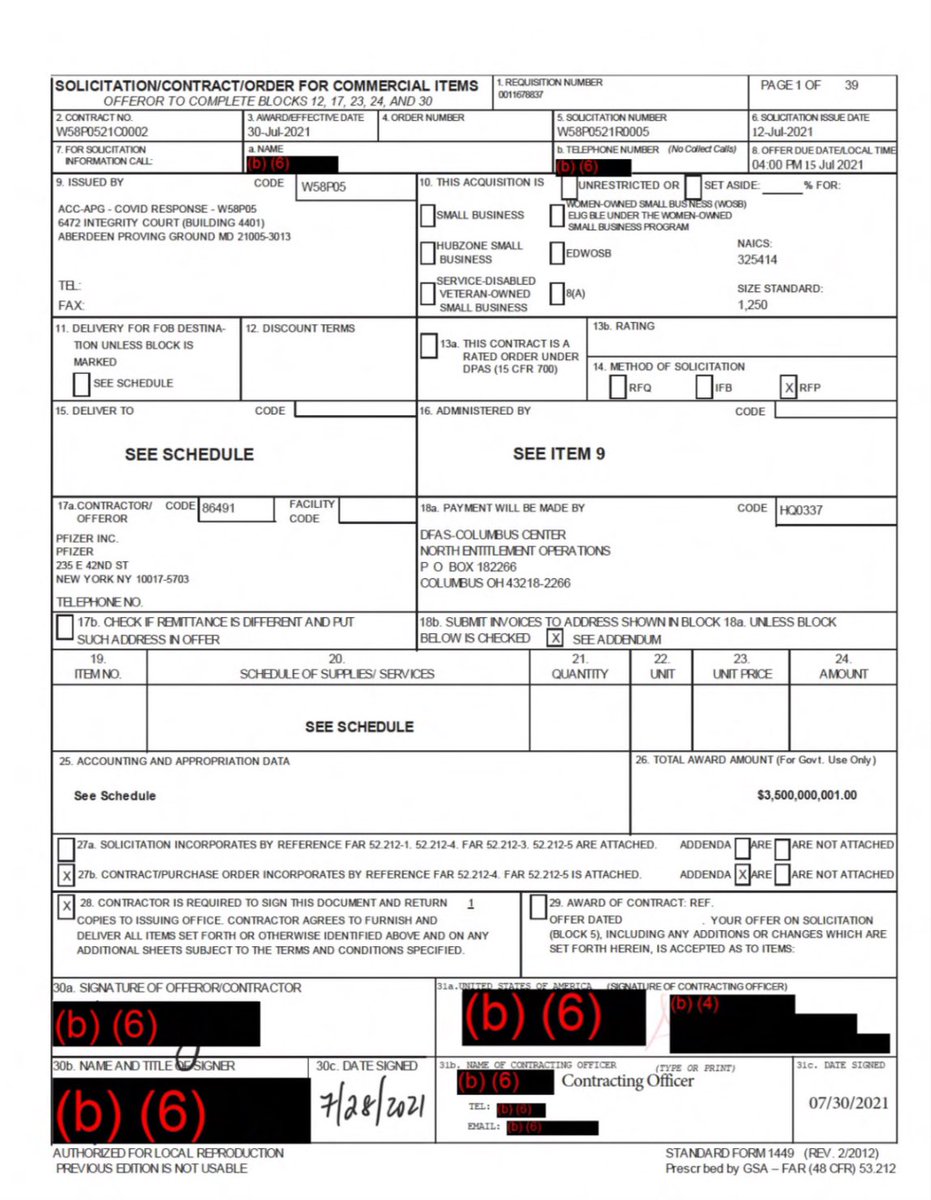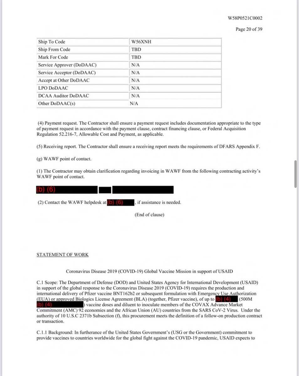 • Per FOIA • • THE DOD CONTRACT WITH PFIZER • Have a good day! <3 https://t.co/phrSzbXWU7