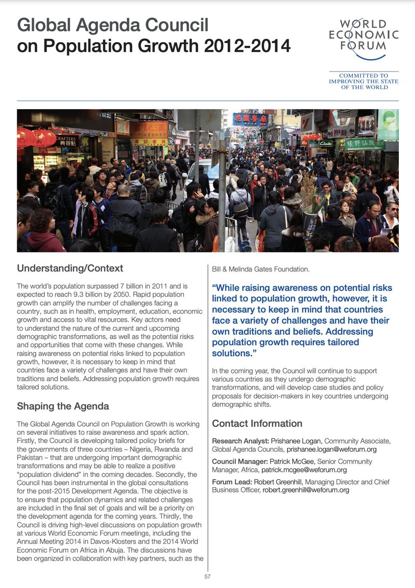 24. I want to close this thread in the period 2012-2014, where The World Economic Forum, in collaboration with Bill Gates are featured in a document called the “Global Agenda Council on Population Growth 2012-2014”. This Agenda mentions that “the Council is developing tailored policy briefs for the governments of three countries – Nigeria, Rwanda and Pakistan – that are undergoing important demographic transformations and may be able to realise a positive “population dividend” in the coming decades” As public interest has grown more aware about the plans of these elite organisations, they seem to have gradually become more and more careful with public statements about population, since it draws too much attention. One wonders what closed door sessions look like nowadays. I'm going to finish up here. I have planned threads coming up that will link into this As we can see in the posts above. There has been a definite campaign against population growth, especially in non-Western countries, funded by both nongovernmental organisations and governments in other key areas. And one thing seems to be clear, much of the fear against population growth seems to be directed towards non Western Countries The Rockefellers, Population Council, Klaus Schwab's World Economic Forum, Bill Gates, The World Health Organisation, to name a few, have all been instrumental in shaping the Population Extinctionist Movement, which Elon Musk is now calling out as a total scam And let's not forget, the World Health Organisation, largely influenced by Bill Gates, has given itself complete immunity should it be moving us all in the wrong direction. It's written into their charter