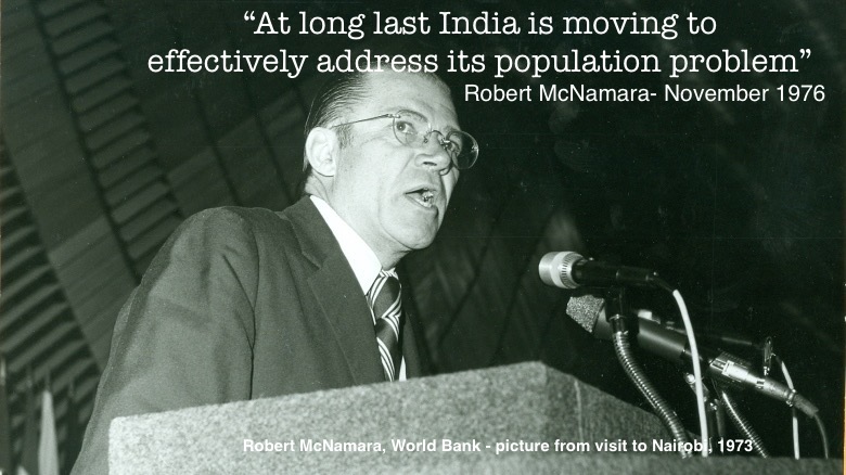 8. The India emergency was well documented. Millions of people were sterilised in the 1970’s. In one report, shockingly, the WORLD BANK President Robert McNamara, commented on Gandhi's Emergency Period Population policies, saying that he was "encouraged" by what he was seeing, saying (Record from "Notes on visit to India, 6-12 November, 1976") that: "At long last India is moving to effectively address it's population problem"