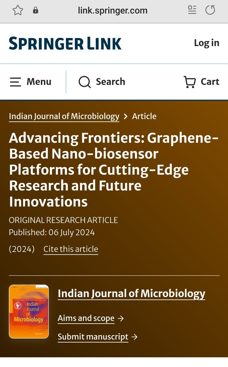 6 July 2024 Advancing Frontiers: Graphene-Based Nano-biosensor Platforms for Cutting-Edge Research and Future Innovations https://link.springer.com/article/10.1007/s12088-024-01318-2 #graphene #biosensors