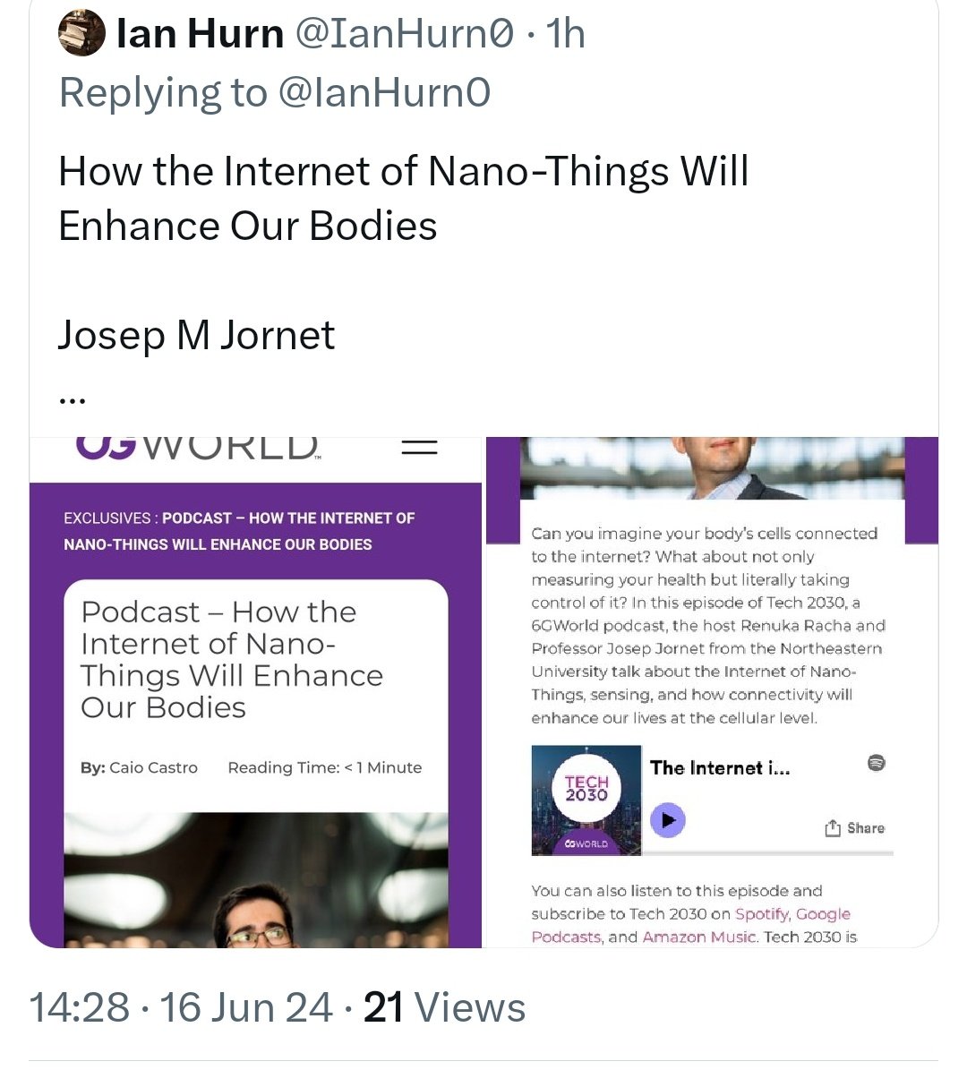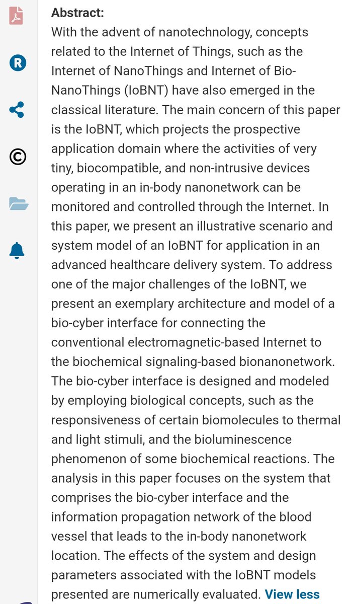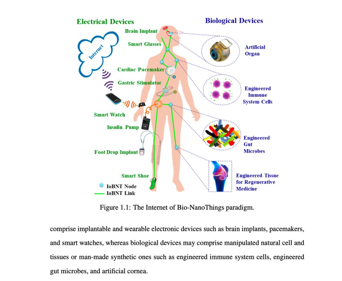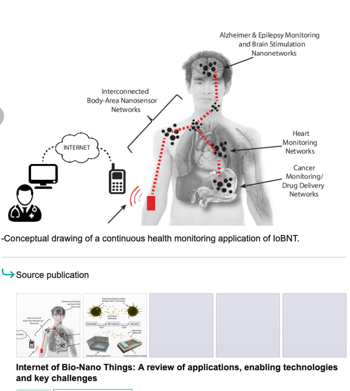 https://ianakyildiz.com/wp-content/uploads/2021/09/panacea.pdf [PDF] The internet of Bio-Nano things - Semantic Scholar https://www.semanticscholar.org/paper/The-internet-of-Bio-Nano-things-Akyildiz-Pierobon/834828629d9b0684f3d57318dac894401c20083a 4.[PDF] The internet of Bio-Nano things - Semantic Scholar https://www.semanticscholar.org/paper/The-internet-of-Bio-Nano-things-Akyildiz-Pierobon/834828629d9b0684f3d57318dac894401c20083a 5.https://ieeexplore.ieee.org/document/9145564 6.https://youtu.be/diW1nOS_aVg?si=R1K8YtT-JYTFzadB Source: James Scott