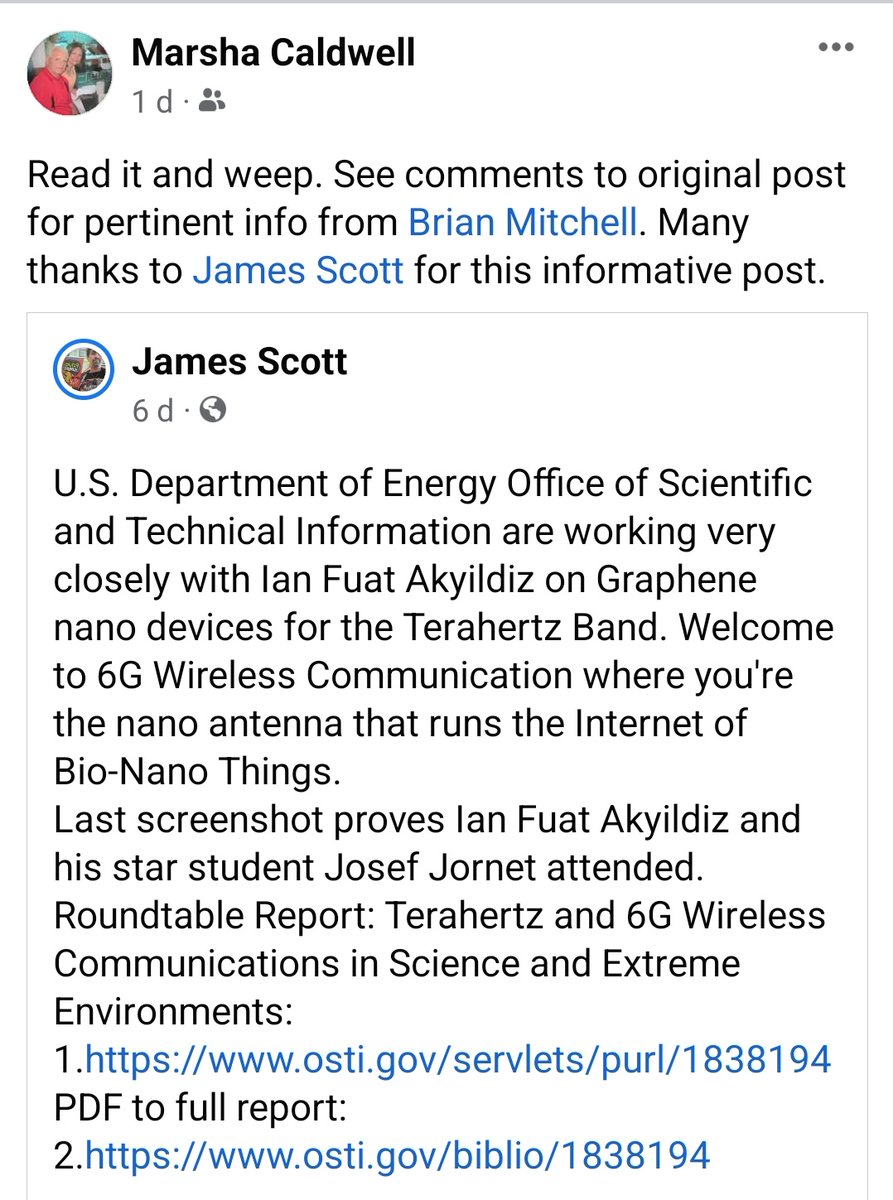 Last screenshot proves Ian Fuat Akyildiz and his star student Josef Jornet attended. Roundtable Report: Terahertz and 6G Wireless Communications in Science and Extreme Environments: 1.https://www.osti.gov/servlets/purl/1838194 PDF to full report: 2.https://www.osti.gov/biblio/1838194 https://m.facebook.com/story.php?story_fbid=pfbid02gxT16S9yB7oBcK4dzkVi9B8mREXMTb4VwEx1ARjkk8Hc7dYf4ep1cvHeFSe1uSxcl&id=100030696348393