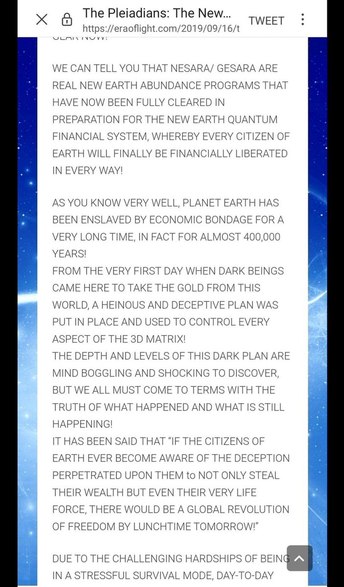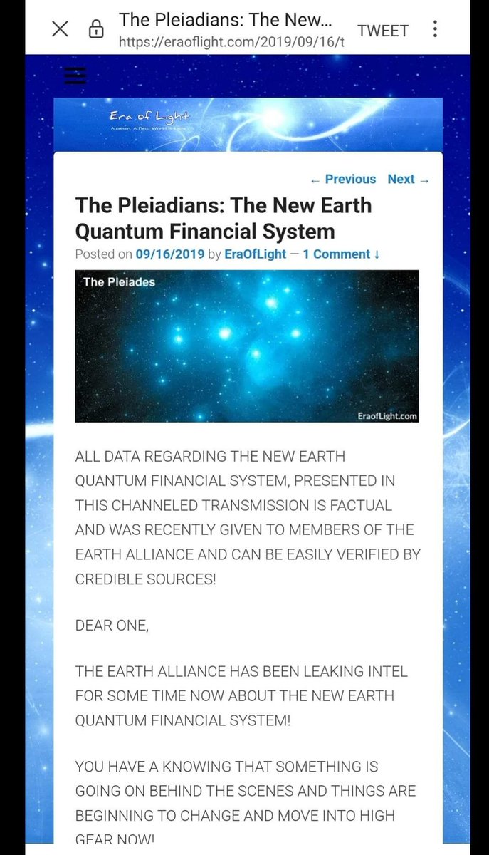 Seems like i had a point 🤦♂️ The New Age/New Earth ascension crowd have been cheerleading for the Quantum Financial System Reset for many years. https://eraoflight.com/2019/09/16/the-pleiadians-the-new-earth-quantum-financial-system/