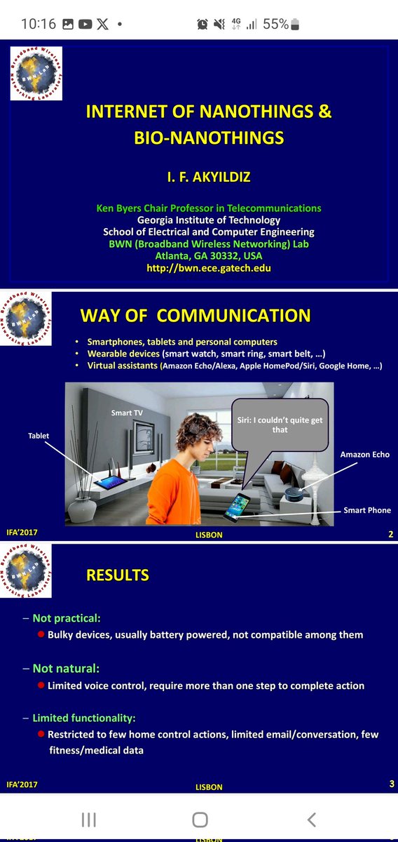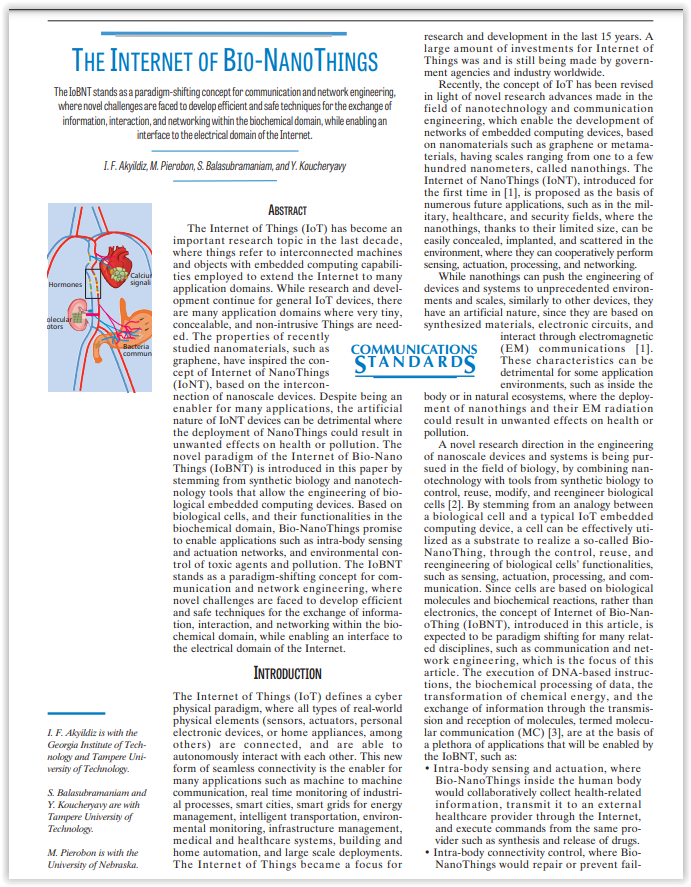 INTERNET OF μTHINGS, NANOTHINGS & BIO-NANOTHINGS - Dr. Ian F. Akyildiz 1.https://ianakyildiz.com/bwn/presentations/Internet%20of%20Nanothings%202017-04.pdf… 2.(PDF) The internet of Bio-Nano things | Ian Akyildiz - http://Academia.edu https://academia.edu/93993756/The_internet_of_Bio_Nano_things?f_ri=553979… 3.Ian F Akyildiz wants to teach everyone about his design for remotely
