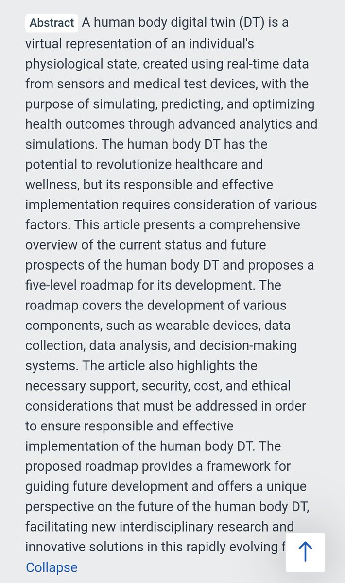 A human body digital twin is a virtual representation of an individual's physiological state, created using real-time data from sensors and medical test devices, with the purpose of simulating, predicting, and optimizing health outcomes through advanced analytics and simulations. https://t.co/wHoOH2L7CP