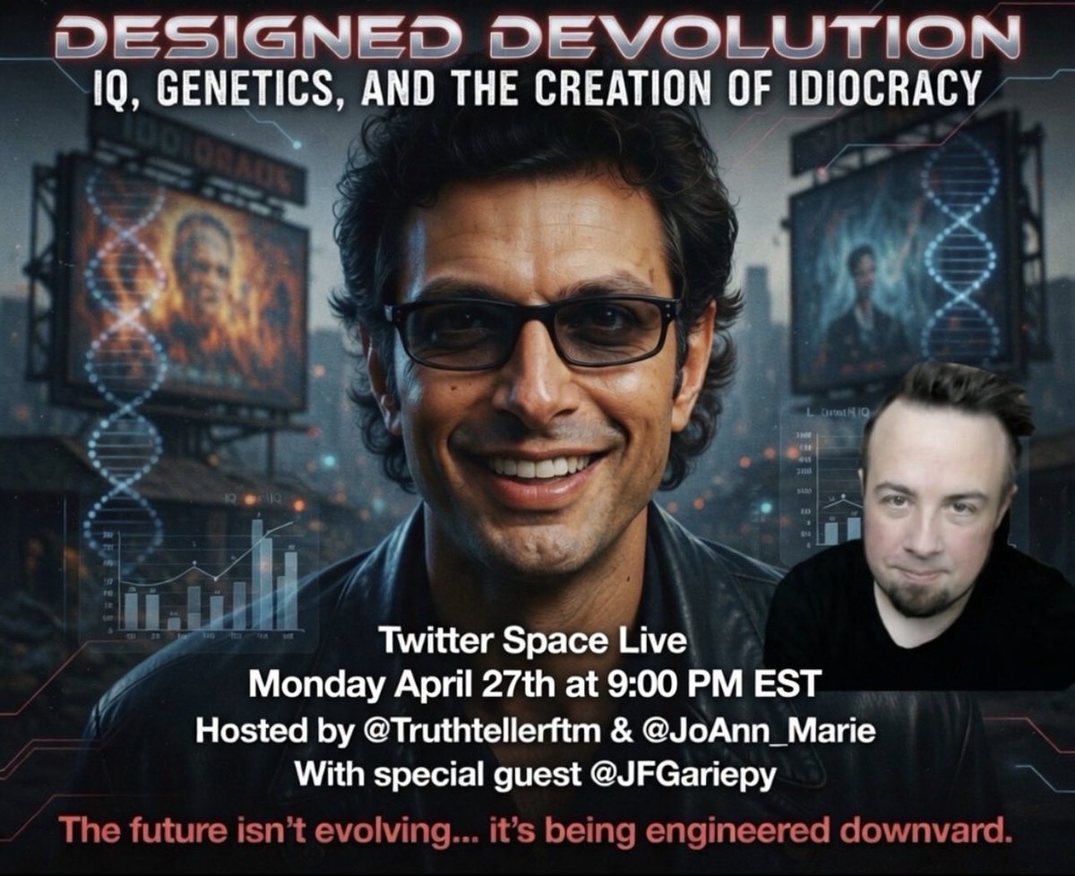 Rescheduled with @JFGariepy to discuss genetics, Epstein, his meeting with him, and where humanity goes tomorrow Co-Hosts: • @JoAnn_Marie • @MalleusIg https://t.co/Ewr4cnf7S4