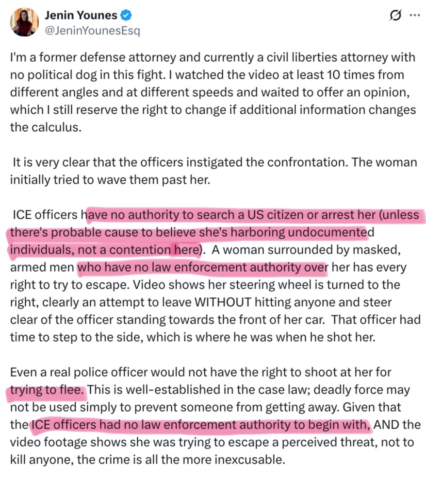 NEW: Footage shows Renee Good’s vehicle stopped sideways in a Minneapolis street for three minutes before accident occur. “Surveillance video taken by a nearby home shows agents milling about near the vehicle, then converging on it. You can see, right there, the SUV begins to move—and that’s when the shots are fired.” “The SUV had been stationary and sideways across the road like that for about three minutes. The reason for that is unclear.” “The footage shows Renee Good’s maroon Honda Pilot entering from the right. Then, about 20 seconds later, someone gets out on the passenger side. We don’t know who this person is or why they leave the car. We then see her turn and pull perpendicular across the street, seeming to block the way.” “Finally, there is a new angle showing the federal officer who shot her. He arrives as another federal SUV pulls up. The ICE officer briefly goes back to his car, then returns, and with another agent grabbing at her door, she starts to move forward again—followed by three gunshots in quick succession.”