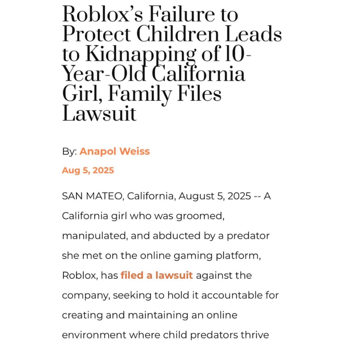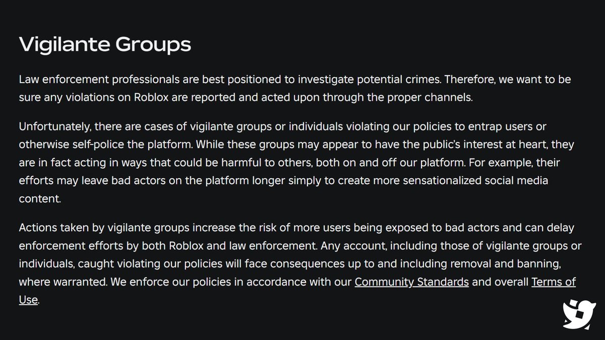 This vigilante group has been contacted by hundreds of victims and potential victims thanking them for their work and advocacy to keep children safe — yet Roblox claims that such groups are “increasing the risk of more users being exposed to bad actors.” 7/11 https://t.co/LwVMyBEB6t
