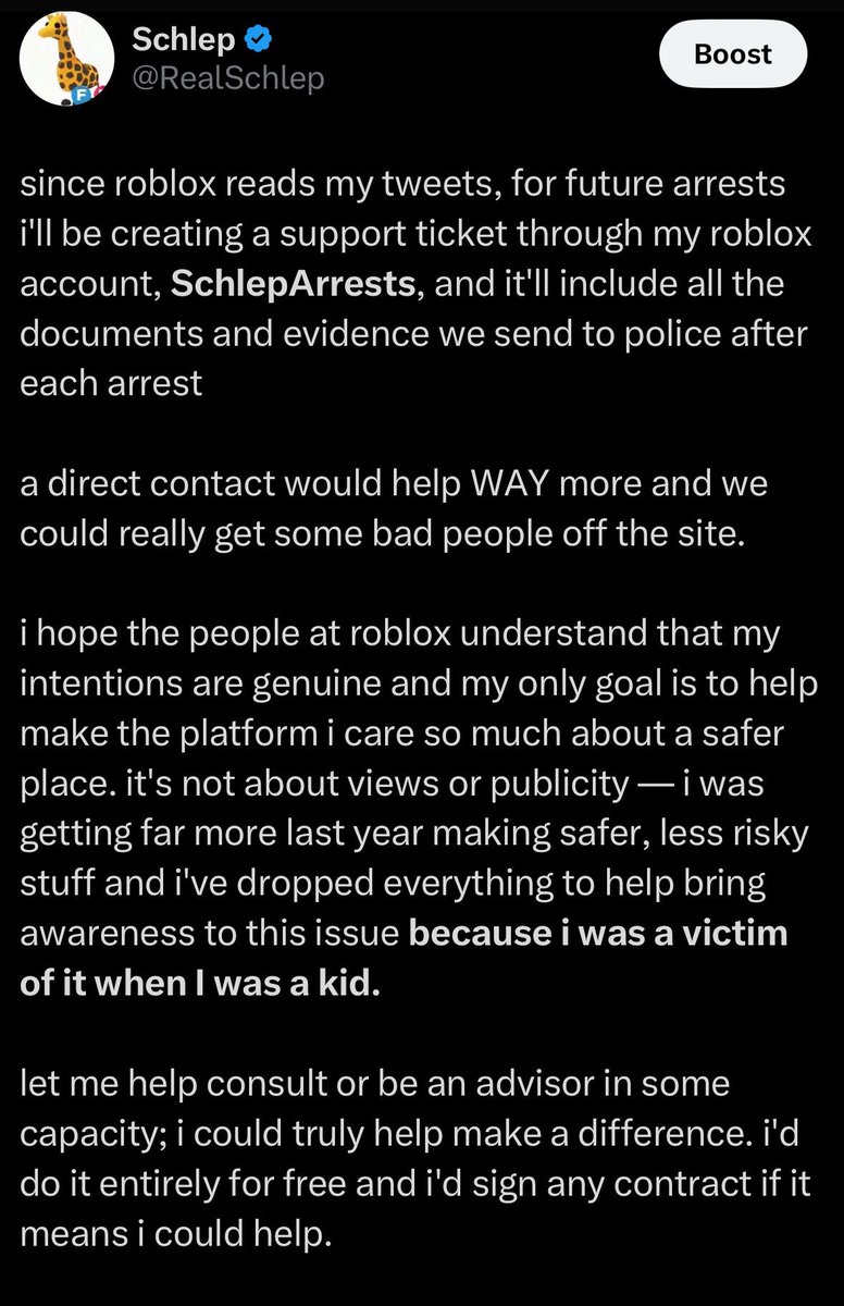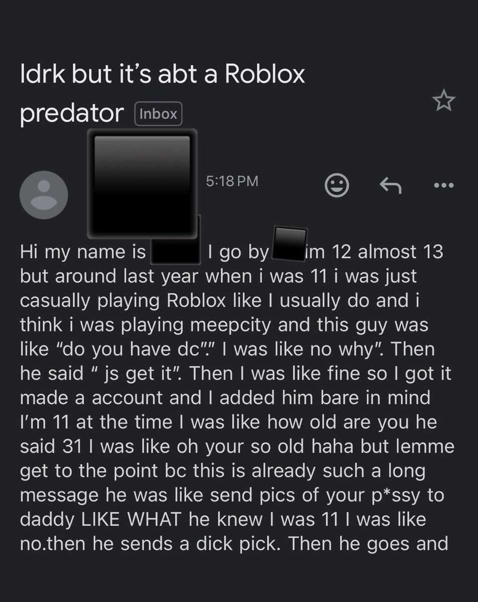 Michael, now 22, was himself a victim as a minor when an adult targeted him while he was playing Roblox. Six years ago, the trauma nearly drove him to take his own life. When his mother reached out to the Roblox team, she was brushed off. 3/11 https://t.co/8itLs9fSzI