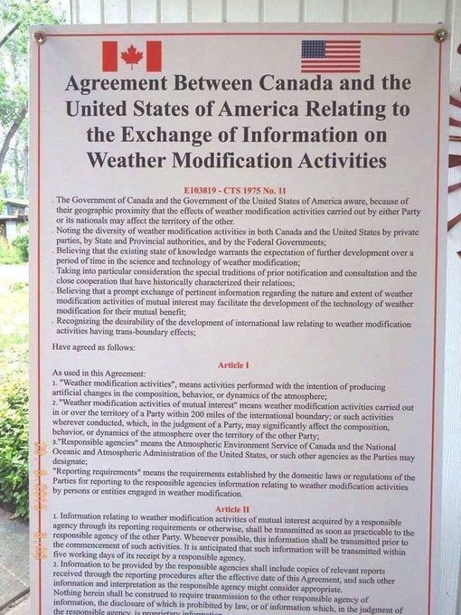 🚨NOTHING TO SEE HERE! 🚨 Totally NORMAL Weather between United States & Canada!🤦♂️ Oh and if you don't think we have "Weather Modification" agreements in place with Canada... THINK AGAIN! (READ image below!) Original Video Posted by djpeace7275 https://t.co/jNXvlS21AZ