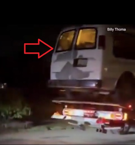 In the photo of the van under the tower, NOTICE it is the same van that was towed away with the MSNBC sticker. It was then replaced by some SUV once it was removed form the water tower and parked a ways away where it was claimed to of been found later that day. -This was part of the cover up!