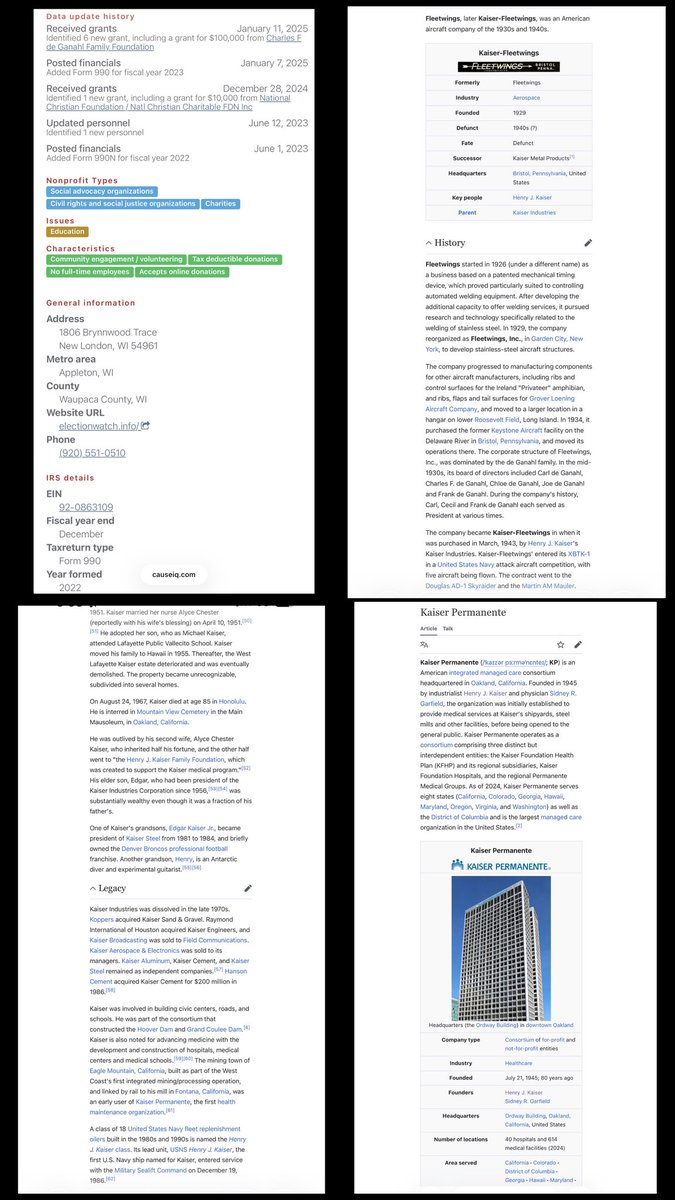 ELECTION WATCH INC. *KEY EMPLOYEES/OFFICERS PETER BERNEGGER, President *COMP (2023 & 2024) $190,100 *GRANTS Charles F de Ganahl Fdn - $300K+ De Ganahl founded FLEETWINGS. Became KAISER-FLEETWINGS after sale to HENRY J. KAISER, founder of KAISER PERMANENTE. KP = LA ARSON🤦🏻♂️ https://t.co/MwPpasa37E