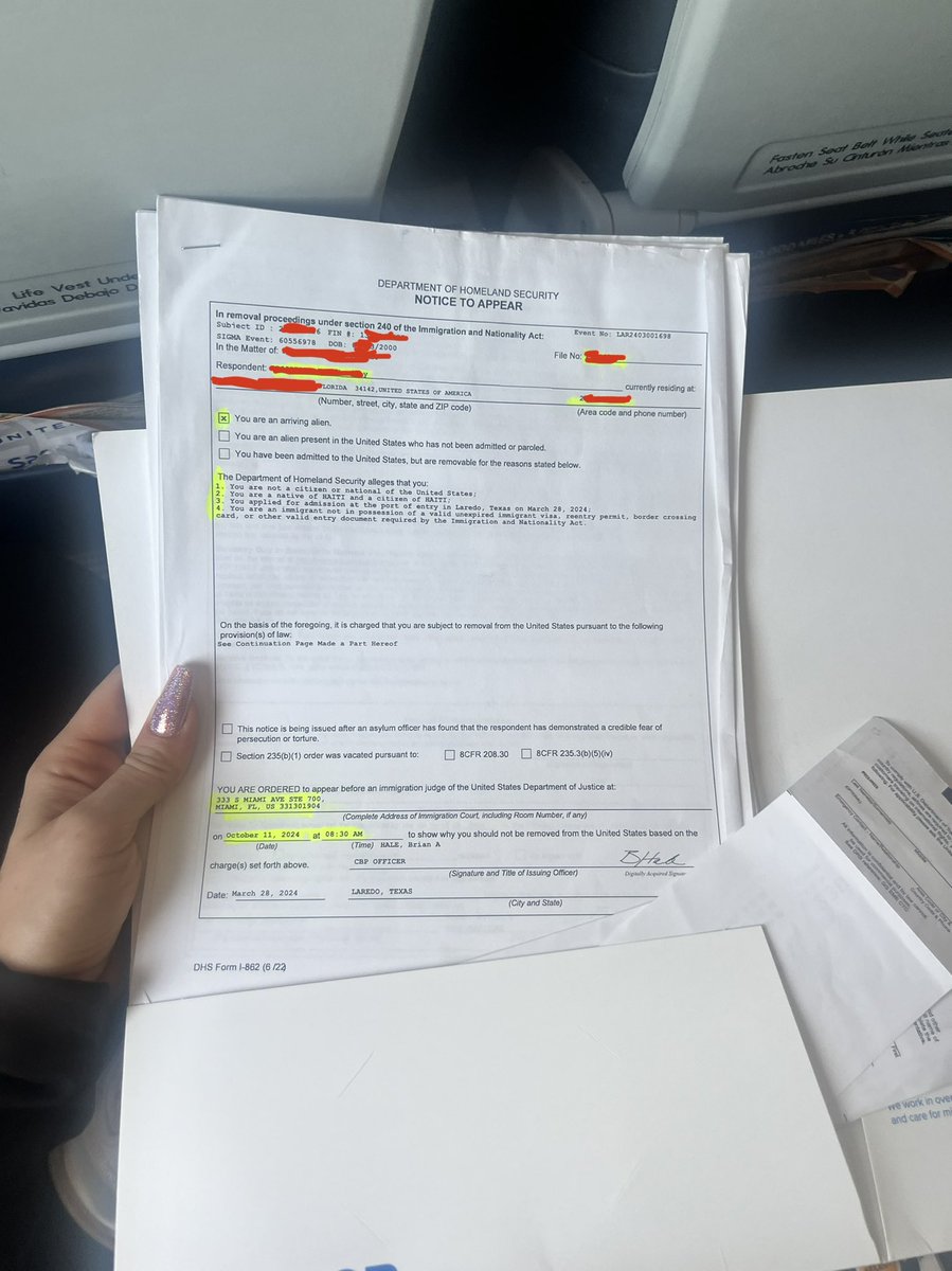On my flight today, I sat next to a couple of guys who crossed the US border illegally. One of them showed me his notice to appear, given to him yesterday by border patrol. A bp agent tells me every illegal gets one, granting them free access wherever they want to go in the US. https://t.co/hXBauklkhI