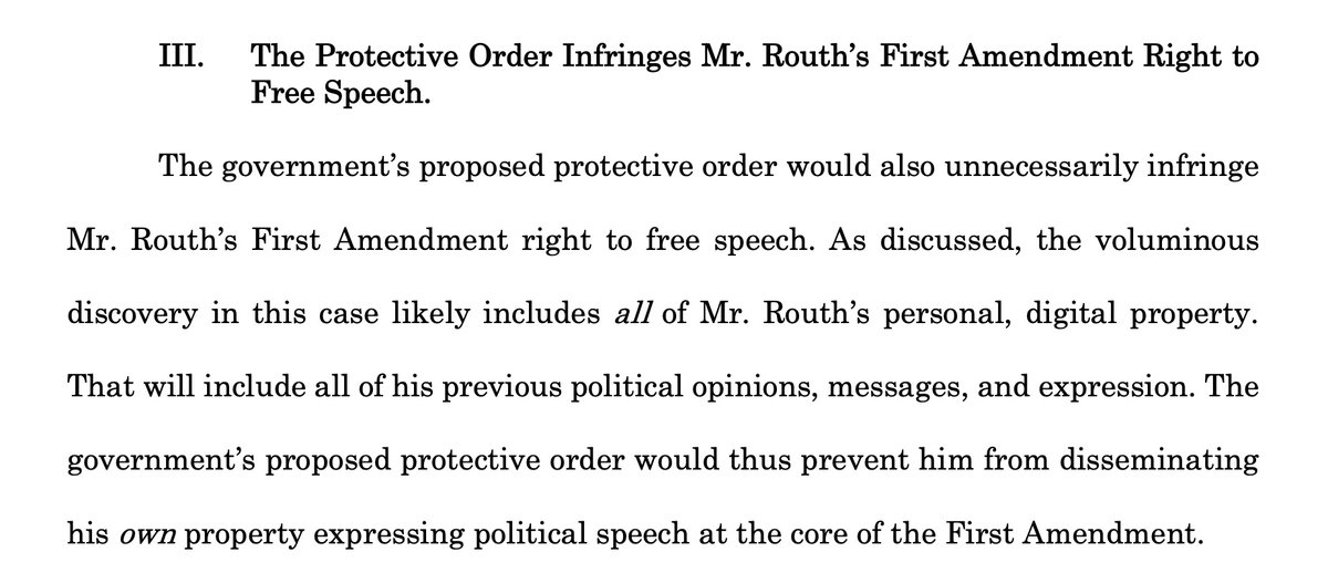 Ryan Routh's attorney opposes the DOJ's efforts to keep all of his discovery secret The attorney noted that the DOJ has published information about the case -- including the infamous letter where he offers $150K to anyone who finishes the job against Trump -- which undermines the argument that all the evidence should be kept secret