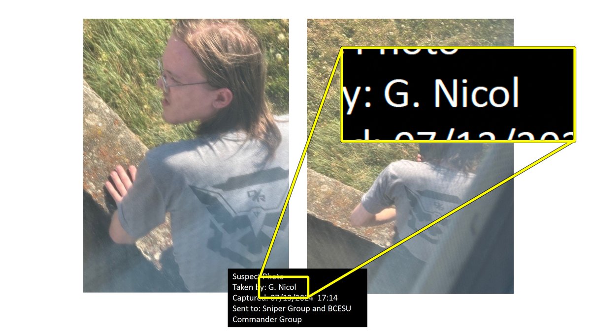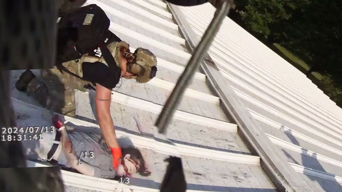 I stitched together this image of @realDonaldTrump shooting suspect Maxwell Yearick dead on the roof of American Glass Research from multiple unredacted frames of the @ChuckGrassley bodycam footage. Thomas Crooks doesn't have a tattoo on his arm. Crooks was never on that roof.