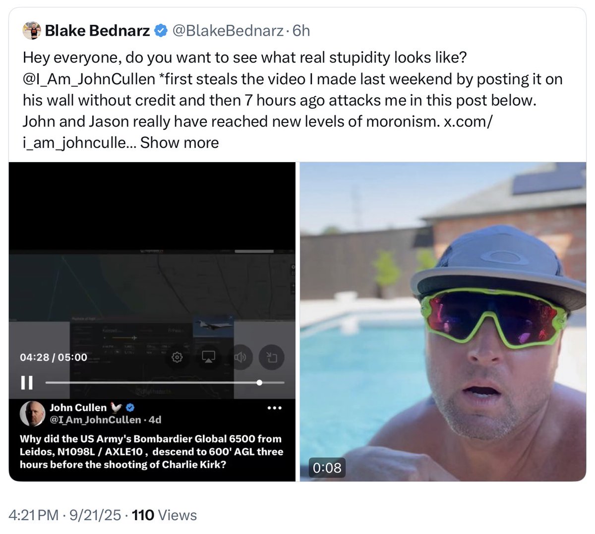I detect a social engineering "catch and kill" aimed at @I_Am_JohnCullen and me. Lying @RealGeorgeWebb1 affiliate @BlakeBednarz put out this tweet accusing us of "stealing" his video, but of course that's not what happened at all.