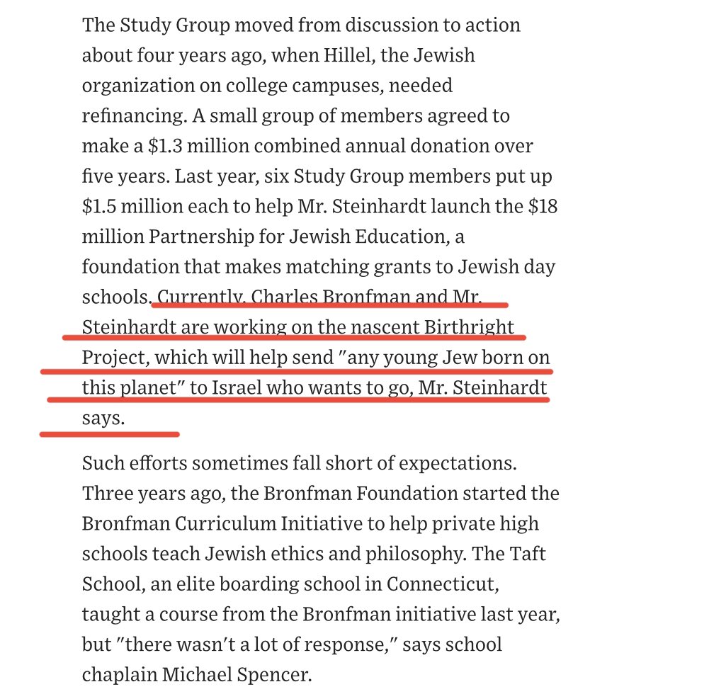 Not only was Birthright founded by Michael Steinhardt, but it was the direct brainchild of Wexner and Bronfman’s Mega Group and the Wexner Foundation has generously financed it. V dark to think about these viral “Birthright orgies” as an extension of the Epstein nexus https://t.co/KOa1jMxjoy