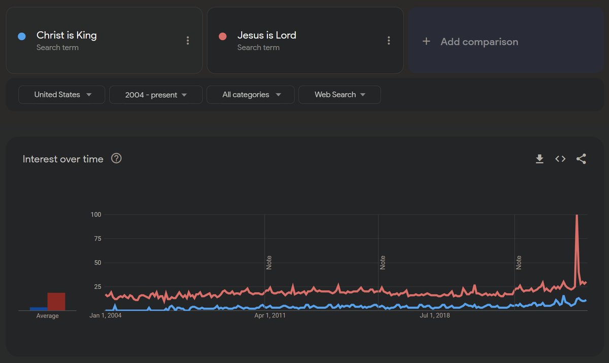 This is correct and the data bears it out Christ is King is a much older and far more common phrase than Jesus is Lord