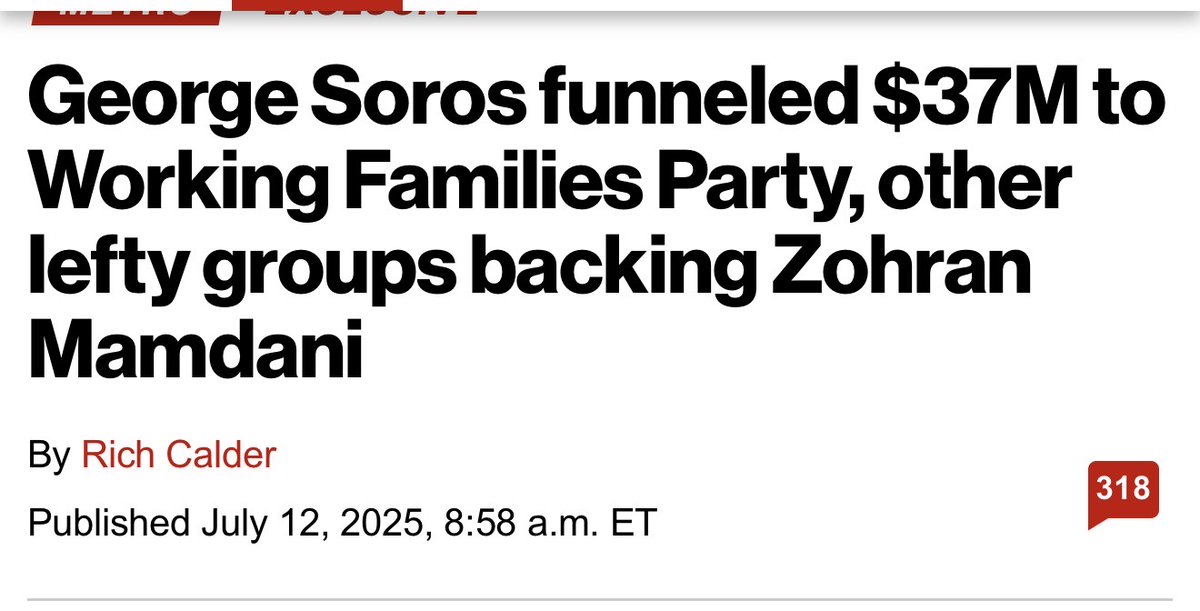 💥 FOLLOW THE MONEY: THE MAMDANI NETWORK Here are the receipts 👇 1️⃣ Soros Funding George Soros’s Foundation to Promote Open Society has donated $1.5 million+ to Bend the Arc: A Jewish Partnership for Justice — a 501(c)(3) nonprofit that bankrolls its political arm Bend the Arc Jewish Action (c4). 📄 IRS 990 + foundation filings confirm it. 2️⃣ Political Spending That c3 moved $2 million (2023) and $1 million (2024) into its c4 political arm — which then endorsed and organized for Zohran Mamdani in NYC. 📄 CharityWatch & Bend the Arc disclosures. 3️⃣ Federal Grant Money (Taxpayer Funds) The same c3 — Bend the Arc — has received federal grants large enough to trigger a Single Audit (meaning $750K+ in taxpayer funding in a year). 📄 ProPublica Nonprofit Explorer audit records. 4️⃣ Shared Resources That means Soros foundation money + U.S. taxpayer money flowed into the same organization that bankrolled the political arm backing Mamdani. 5️⃣ Bigger Picture Open Society has also partnered directly with the U.S. government, matching federal Social Innovation Fund grants with its own cash. 📄 OSF press release (“partnering with federal government to drive innovation”). 💬 In plain English: • Soros-funded nonprofits got taxpayer grants. • Those same nonprofits pushed resources into political arms endorsing Mamdani. That’s not grassroots — that’s engineered politics with public money and private ideology.