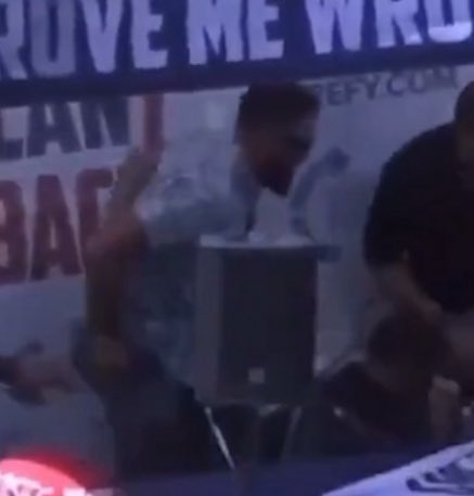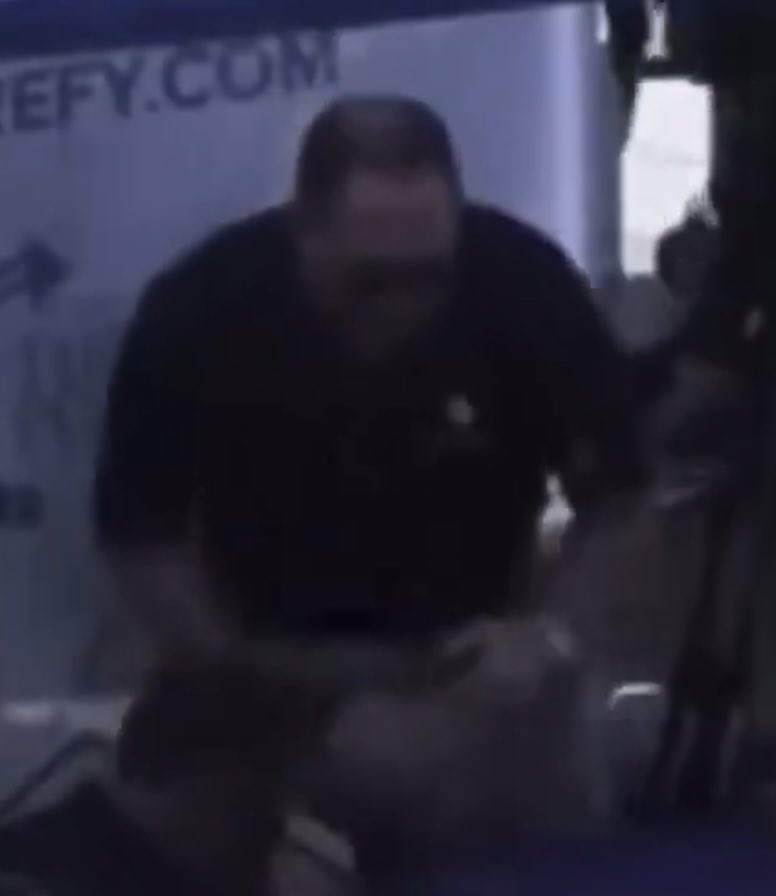 THIS balding man in the dark polo and sunglasses runs over, they hand him something and then he puts it in his pocket and runs off. Do we know what his shirt says? Was it WireFi? https://t.co/2jy7HsTk3I