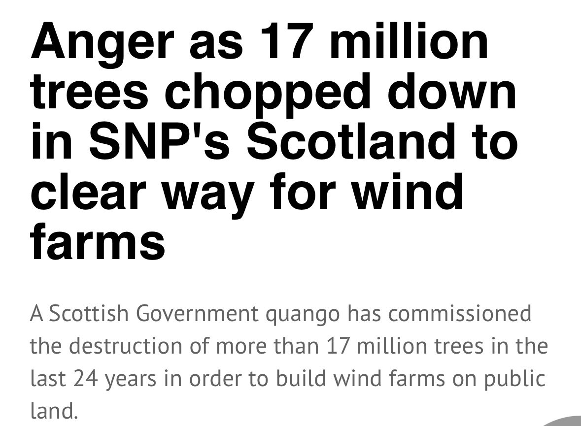 Scotland ๐ด๓ ง๓ ข๓ ณ๓ ฃ๓ ด๓ ฟ Since 2000, an estimated 17 million trees have been cut down in Scotland to make way for wind farms. https://t.co/ttYZldJWC5