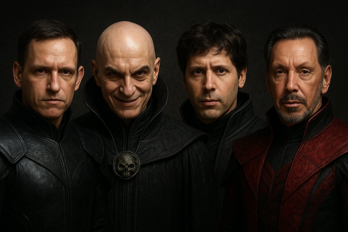 *Top 10 B-List Bond Villains secretly shaping the world: 1. Peter Thiel 2. Palmer Luckey 3. Yuval Noah Harari 4. Alex Karp 5. Sam Altman 6. Larry Fink 7. Erik Prince 8. Gilman Louie 9. Larry Ellison 10. Reid Hoffman Research them—dystopia has a cast list. https://t.co/YsO7TTdpYR