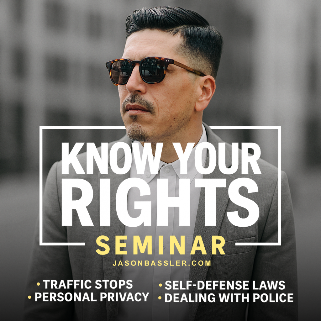 This seminar empowers you with practical knowledge, proven tactics, and the confidence to navigate interactions with police, federal agents, and other authorities. https://www.jasonbassler.com/service-page/know-your-rights