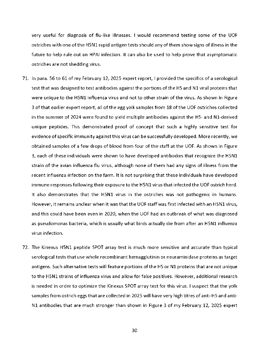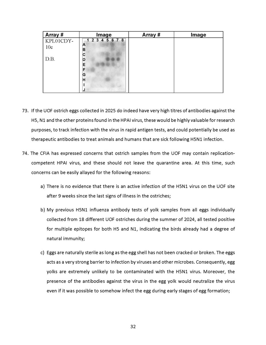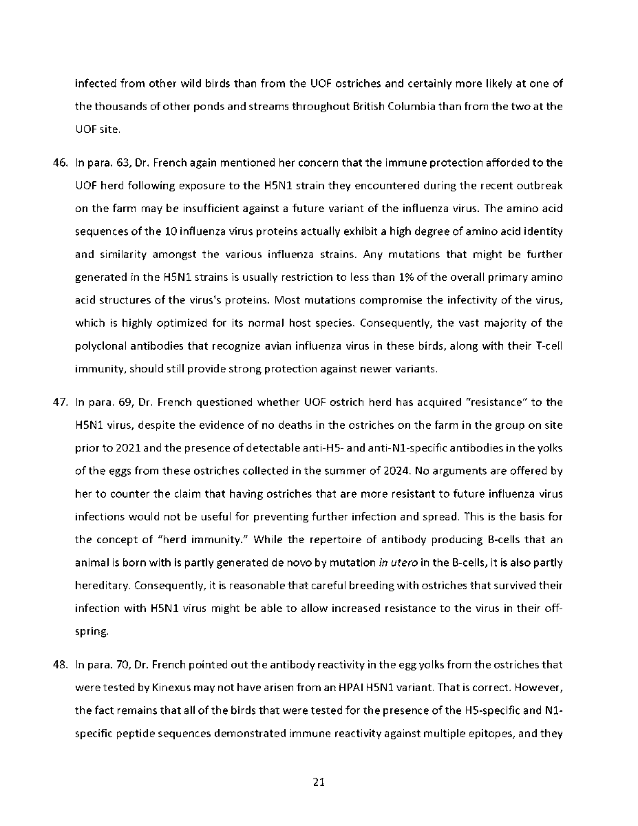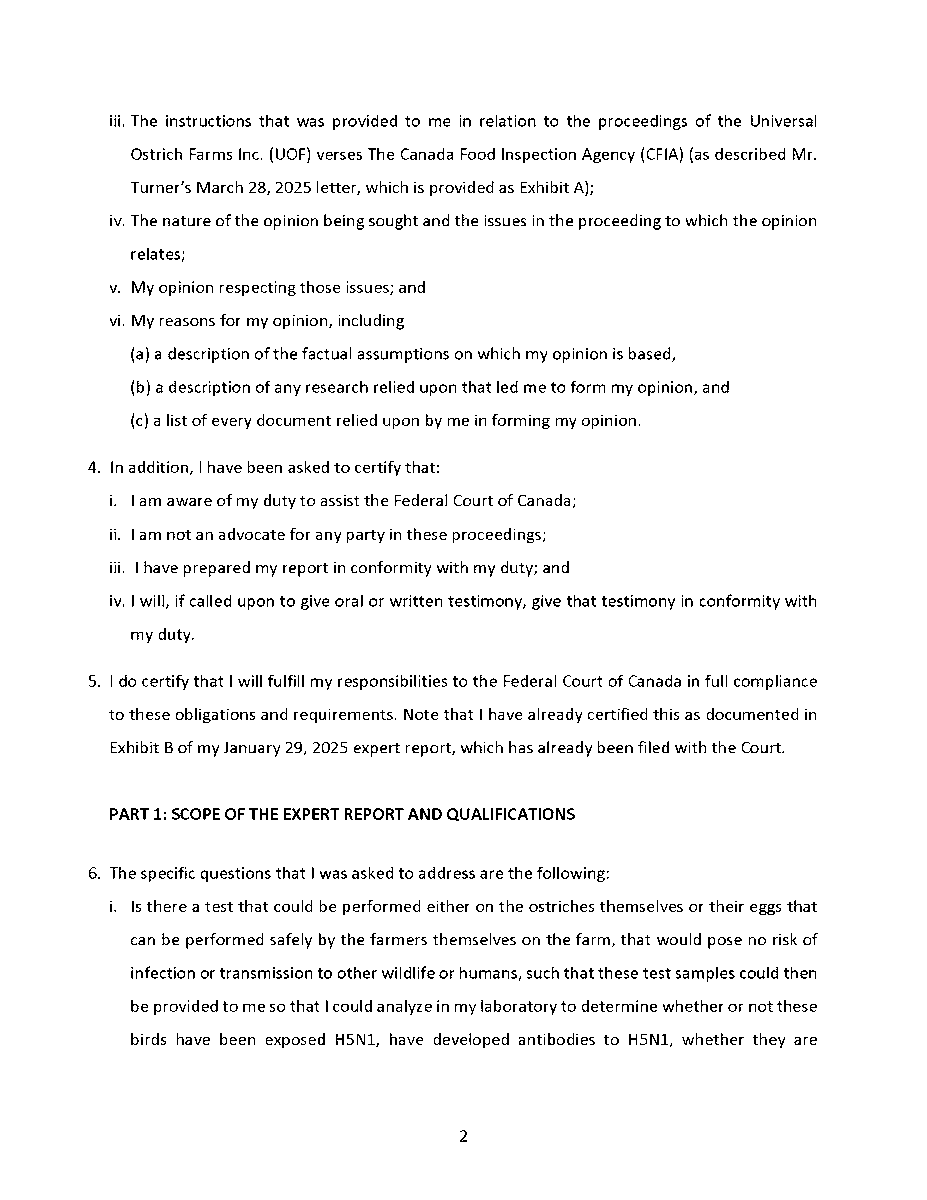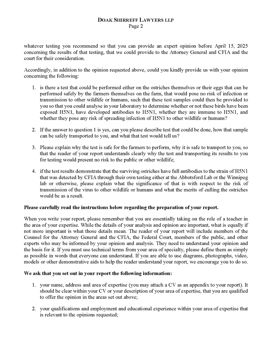 🚨 Universal Ostrich Farm Update: The Evidence the Federal Court Wouldn’t Consider!🚨 Dr. Steven Pelech, a UBC professor with 40 years of experience in immunology, submitted expert testimony demonstrating that the ostriches at Universal Ostrich Farm are healthy, immune, and scientifically valuable. Yet this evidence was denied by the Federal Court. The Birds Are Healthy Dr. Pelech confirmed that the surviving flock is not sick, is not shedding the virus, and is showing strong signs of natural immunity. Confirmed Antibodies He personally tested the eggs from these ostriches and found H5- and N1-specific antibodies in the yolks, proving the birds had recovered and developed immune protection. Research Value Ostrich eggs yield massive amounts of antibodies that can be purified for diagnostics, therapeutics, and even antiviral masks and filters. Dr. Pelech’s report outlined how this flock could advance biomedical science for animals and humans. But the Judge Said No Instead of considering this expert evidence, the Court sided with blanket CFIA policy, ignoring the law’s own provisions that allow treatment, quarantine, or research reservation instead of destruction. The takeaway? These birds are not a threat. They are a once-in-a-generation scientific asset. Culling them is not just cruel, it is a catastrophic loss for science and public health. For complete transparency, the entire 39-page expert report by Dr. Steven Pelech is attached below. Read it yourself and see the evidence the Court refused to consider.