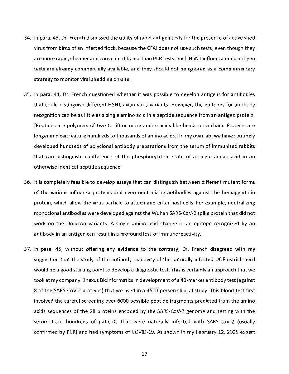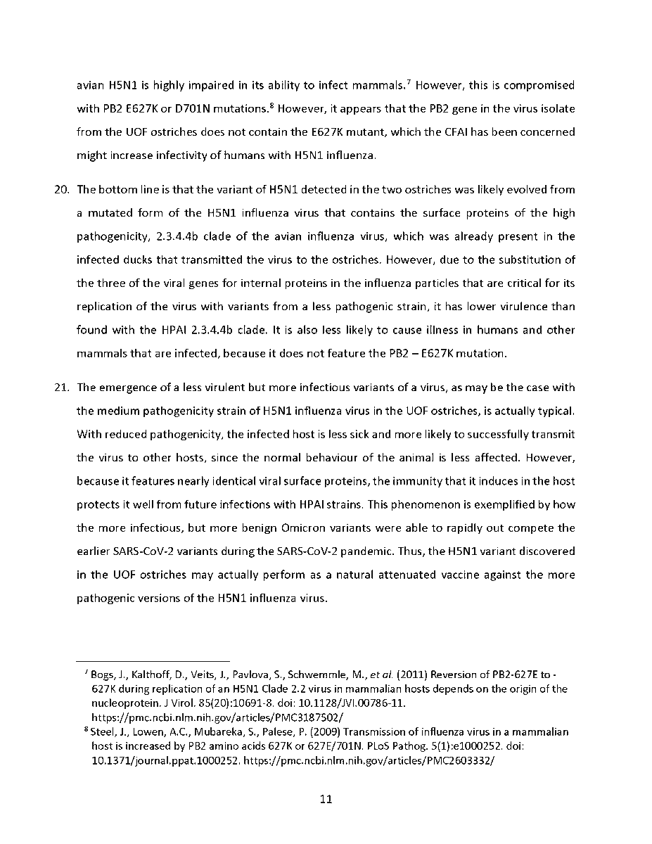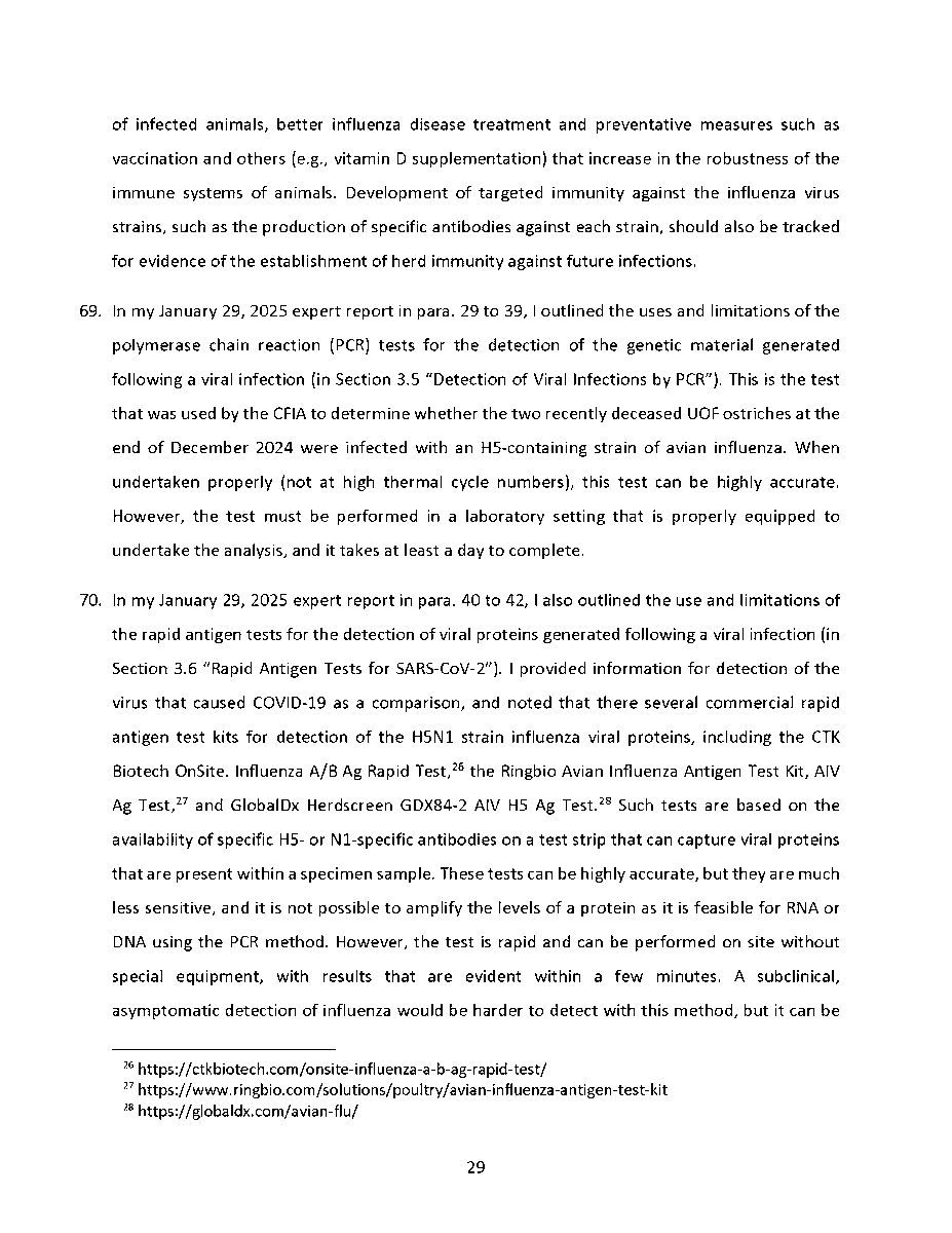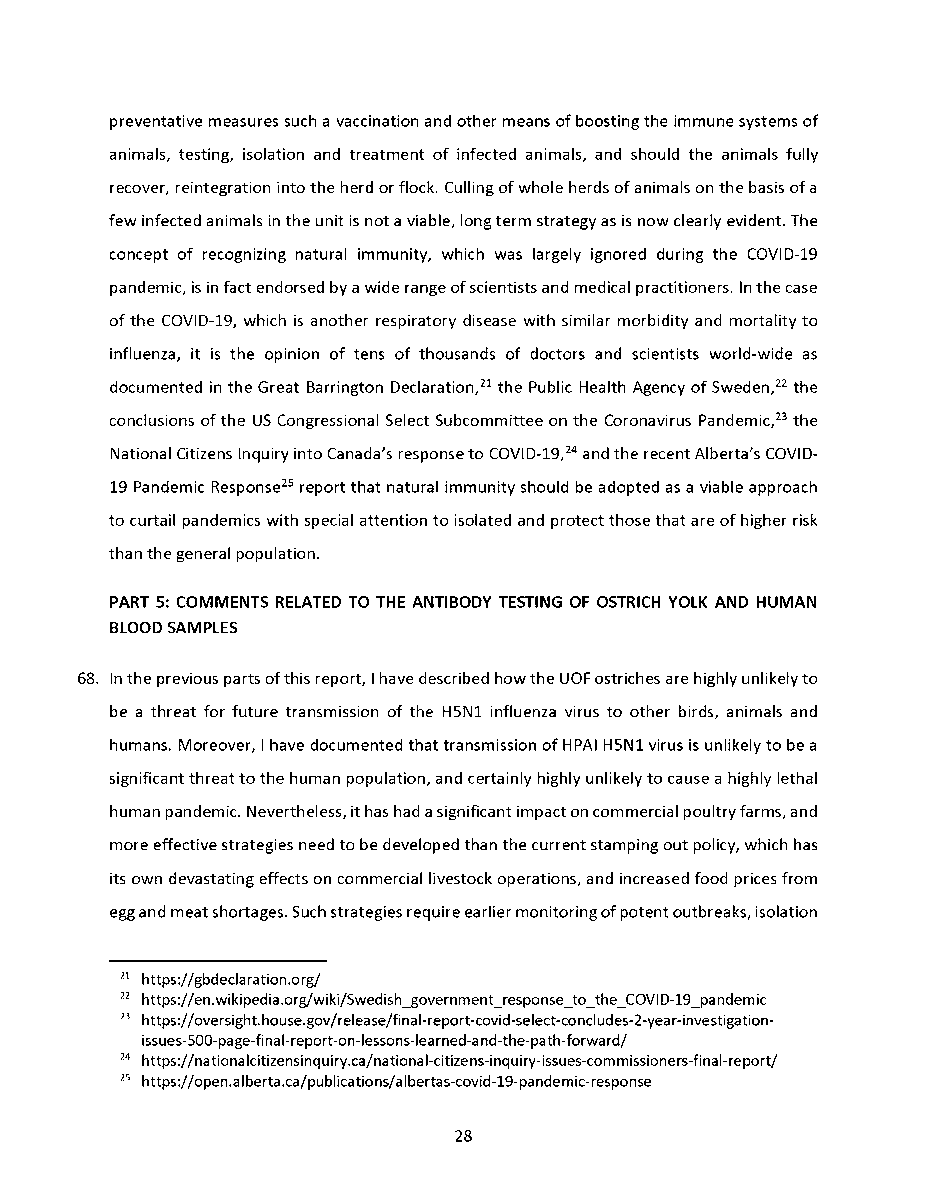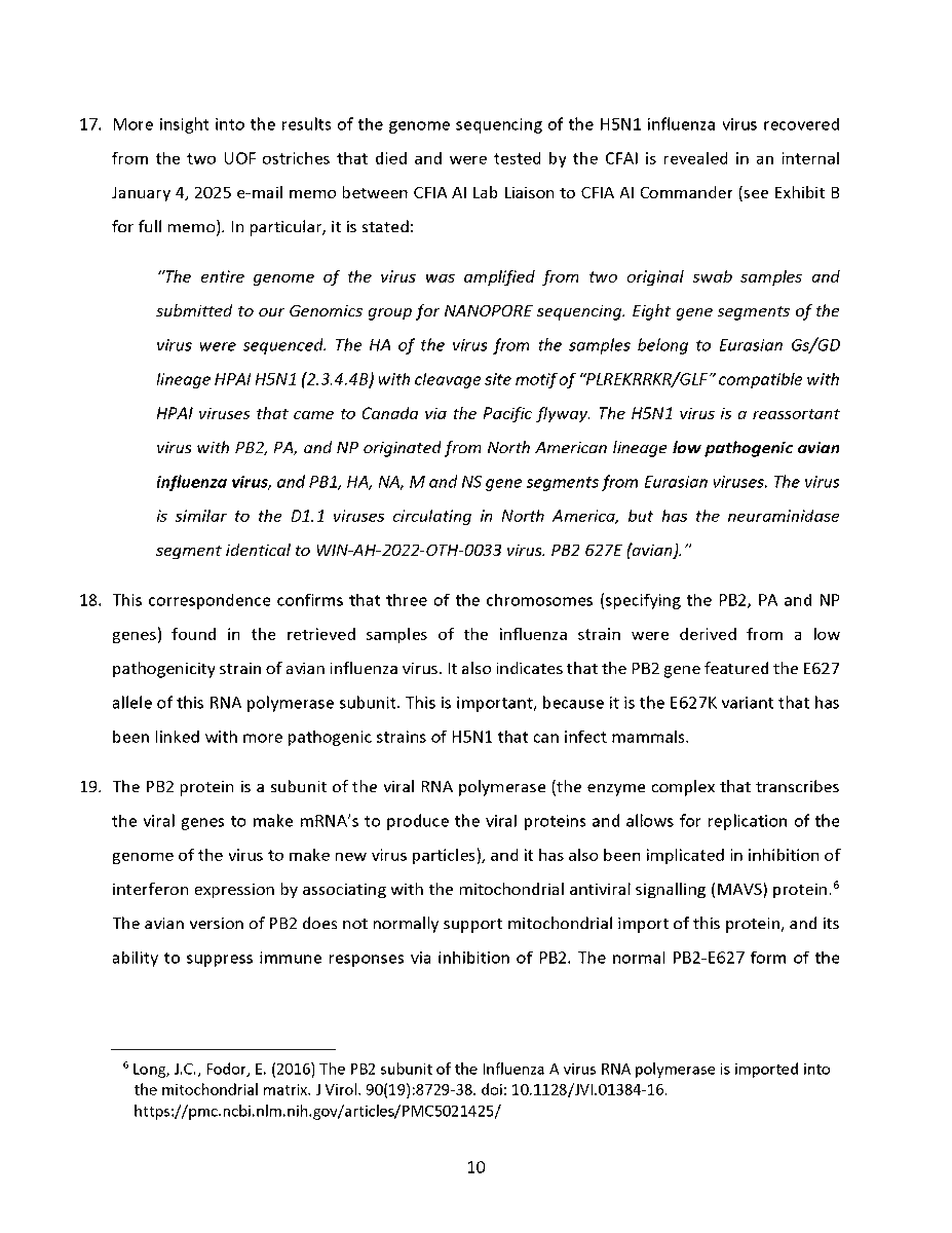 🚨 Universal Ostrich Farm Update: The Evidence the Federal Court Wouldn’t Consider!🚨 Dr. Steven Pelech, a UBC professor with 40 years of experience in immunology, submitted expert testimony demonstrating that the ostriches at Universal Ostrich Farm are healthy, immune, and scientifically valuable. Yet this evidence was denied by the Federal Court. The Birds Are Healthy Dr. Pelech confirmed that the surviving flock is not sick, is not shedding the virus, and is showing strong signs of natural immunity. Confirmed Antibodies He personally tested the eggs from these ostriches and found H5- and N1-specific antibodies in the yolks, proving the birds had recovered and developed immune protection. Research Value Ostrich eggs yield massive amounts of antibodies that can be purified for diagnostics, therapeutics, and even antiviral masks and filters. Dr. Pelech’s report outlined how this flock could advance biomedical science for animals and humans. But the Judge Said No Instead of considering this expert evidence, the Court sided with blanket CFIA policy, ignoring the law’s own provisions that allow treatment, quarantine, or research reservation instead of destruction. The takeaway? These birds are not a threat. They are a once-in-a-generation scientific asset. Culling them is not just cruel, it is a catastrophic loss for science and public health. For complete transparency, the entire 39-page expert report by Dr. Steven Pelech is attached below. Read it yourself and see the evidence the Court refused to consider.