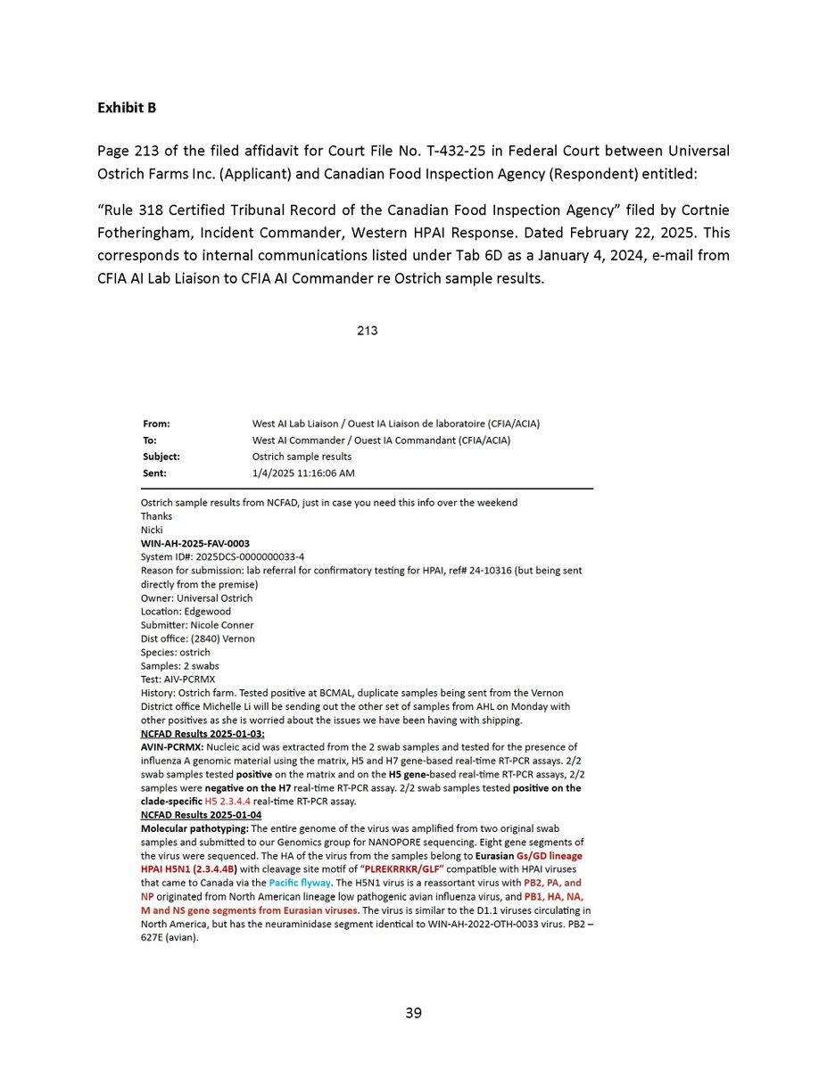 🚨BREAKING: Internal CFIA Email Shows Flock Eligible for Genetic Exemption, Undercuts Mandatory Cull Narrative🚨 There it is, in writing. The CFIA acknowledged that the Universal Ostrich Farm flock qualified for an exemption from depopulation because they possessed “rare and valuable genetics.” That’s straight from the CFIA’s own case officer, in an official email, outlining the criteria for sparing the birds. Yet after confirming the flock met the exemption criteria, the CFIA reversed course, told the public the birds “must” be destroyed, and told the Courts the same. This proves what many of us have been saying from the beginning: - The law allowed an exemption. - The science supported alternatives to culling. - CFIA chose the most extreme option anyway. To those claiming that “other farms were at risk," the CFIA’s own exemption pathway disproves that narrative. They had tools other than culling. They simply chose not to use them. And we must now ask the uncomfortable question: Who benefits when natural immunity, long-lived antibodies, and non-pharmaceutical research are eliminated from the conversation? Not farmers. Not public health. Certainly not the ostriches. There is only one industry whose business model depends on insisting that: - herd immunity doesn’t exist, - natural antibodies don’t count, and - only patented solutions matter. We all know who that is. Big Pharma.