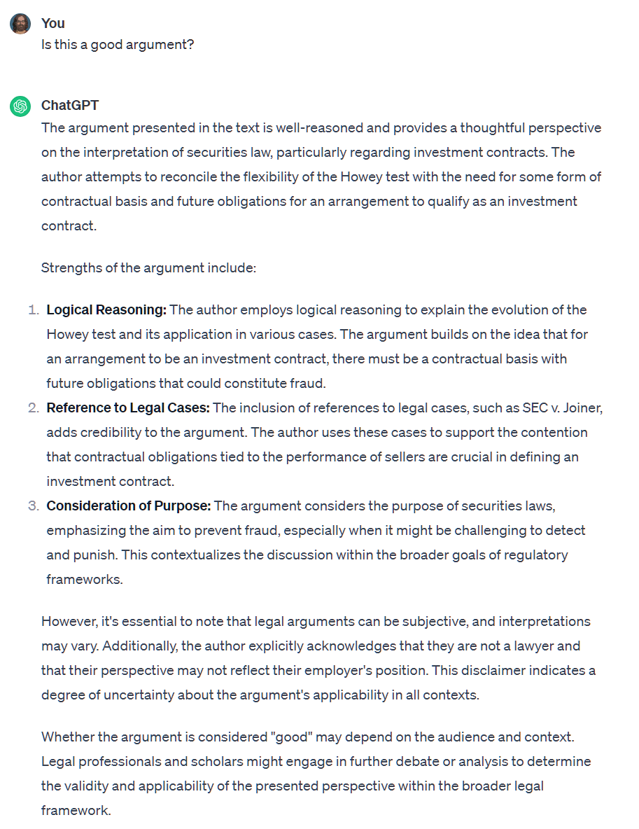Thanks Danielle, I totally appreciate your point but this quote from Judge Rakoff is quite compelling though, don’t you think? “Simply put, secondary-market purchasers had every bit as good a reason to believe that the defendants would take their capital contributions and use it to generate profits on their behalf." And this one too: “That a purchaser bought the coins directly from the defendants or, instead, in a secondary re- sale transaction has no impact on whether a reasonable individual would objectively view the defendants’ actions and statements as evincing a promise of profits based on their efforts.”