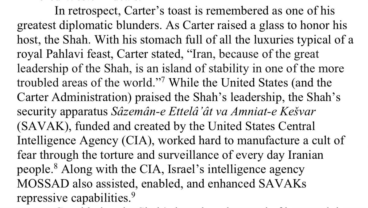 With Mossadegh imprisoned and the Shah back on the Peacock Throne, Iran was transformed into a client regime of the West. The Shah’s autocracy deepened: he quickly became a major purchaser of American weaponry and welcomed foreign oil companies back in. Over the next 25 years, Washington provided massive support from weapons to finance propping up the Shah as an anti-Soviet “pillar” in the Middle East . US officials hailed Iran’s “stability,” while turning a blind eye to growing repression. Source: https://nsarchive2.gwu.edu/NSAEBB/NSAEBB435/#:~:text=Recently%2C%20the%20CIA%20has%20declassified,as%20anxious%20to%20shield%20British