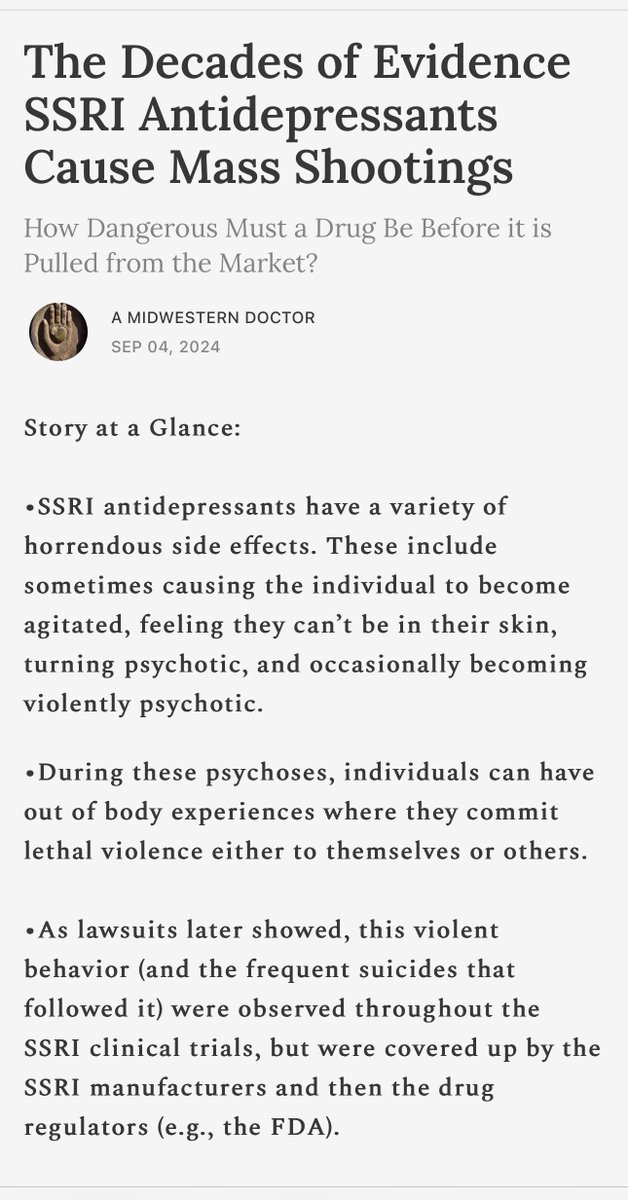Full Article Here: https://www.midwesterndoctor.com/p/the-evidence-ssri-antidepressants