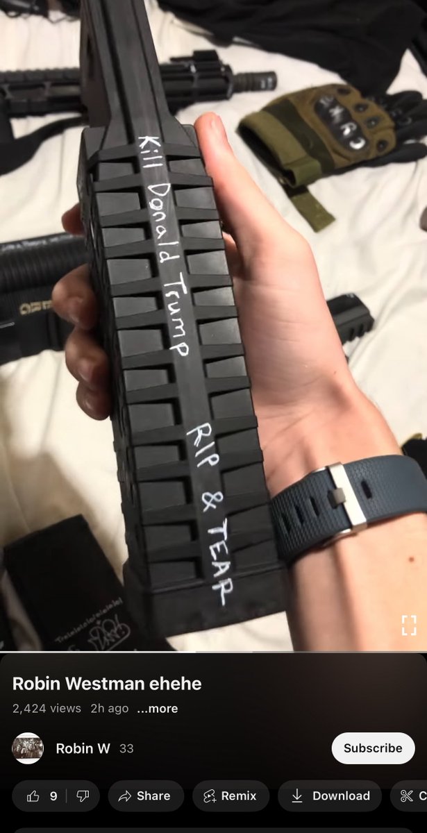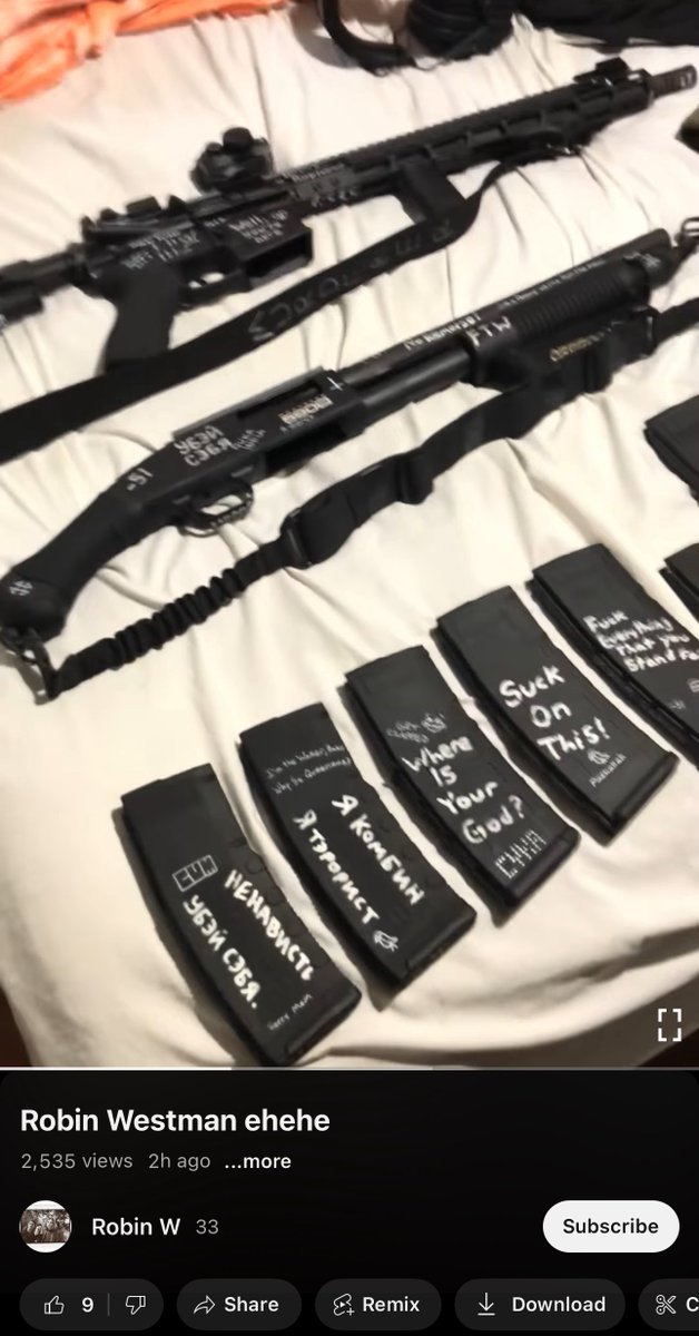 BREAKING 🚨🚨 🚨 WARNING HIGHLY DISTURBING This is an 11 minute video posted by the psychotic school shooter today in Minneapolis. It was posted 2 hours ago on a YouTube channel named Robin W. In it he shows a manifesto and an arsenal of guns with writing on them while laughing maniacally. One of the magazines has “Kill Donald Trump” written on it.