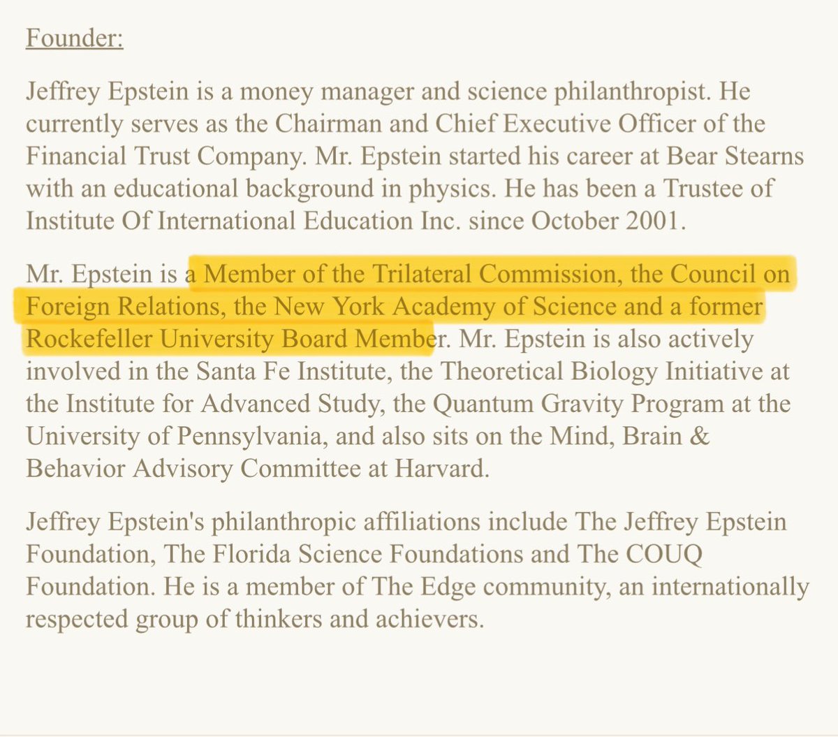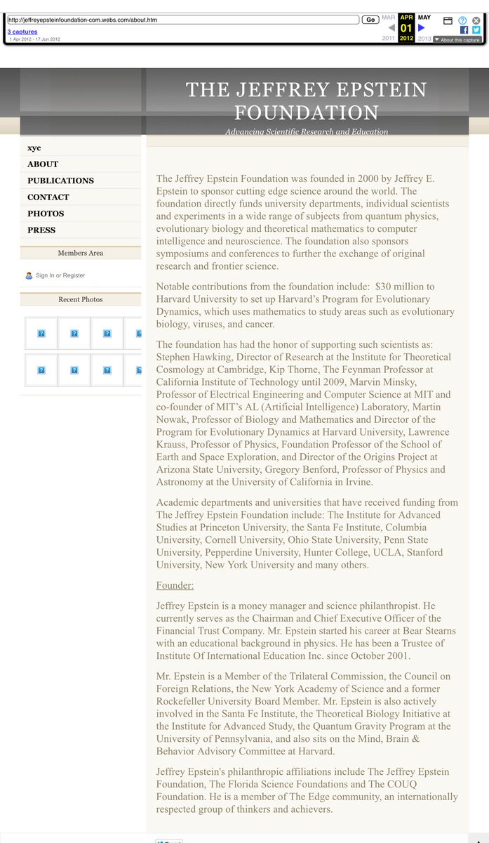 If you want to know why the Epstein story is being covered up look no further than The Jeffrey Epstein Foundation. This is the oldest way back screengrab I could find. Look at what groups/organizations he was a member of… 👉🏻 web.archive.org/web/2012040100… https://t.co/M43ch9DI1s