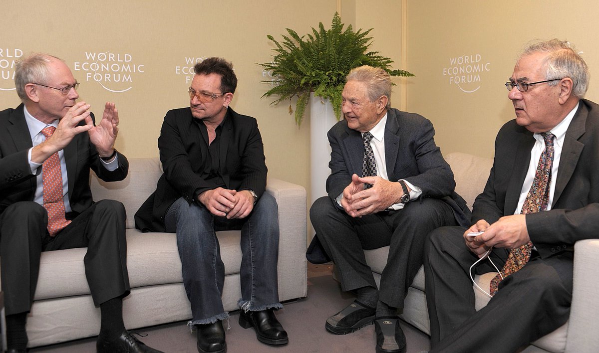Bono’s proximity to elite global power forums like the World Economic Forum in Davos and the Bilderberg Group further reveals his deep entanglement with the architects of modern neoliberalism. At Davos 2019, when confronted by anti-capitalist protesters, Bono flatly declared, “Capitalism is not immoral. It’s amoral. It requires our instruction.” In that same appearance, he praised partnerships with billionaires and multinational corporations as essential to solving global poverty, a claim critics argue serves as moral cover for extractive economic models that reinforce inequality. Bono’s logic mirrors that of the Davos class: wealth is not the problem, only the distribution of responsibility. Moreover, Bono has been a confirmed attendee of Bilderberg meetings, which bring together government officials, central bankers, intelligence-linked technocrats, and select media gatekeepers to conduct policy discussions behind closed doors, with no public accountability whatsoever. Source: https://www.independent.co.uk/news/uk/home-news/davos-2019-bono-u2-capitalism-immoral-africa-aids-wef-poverty-un-a8742071.html