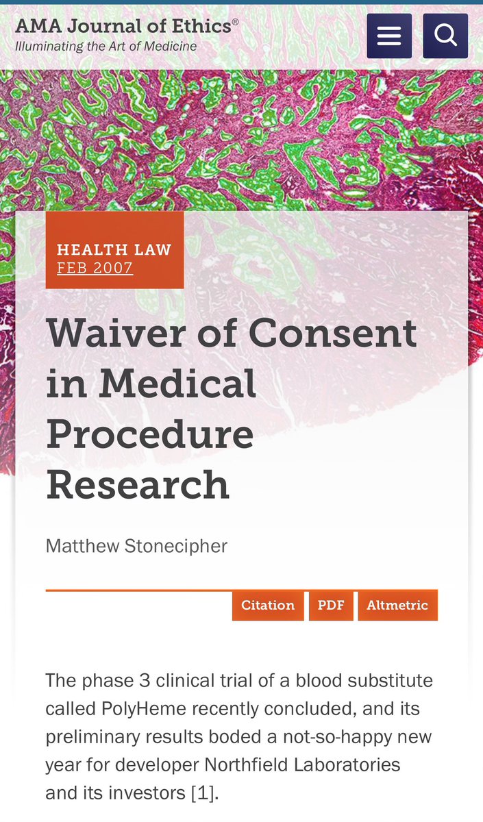 Thread 🧵 Un-Informed Consent: The Story of Polyheme Every once in a while you come across a true story that that leaves you dumbfounded and disturbed, revealing a glimpse of actual evil, not some abstract concept you read about in a book. This is one of those stories.
