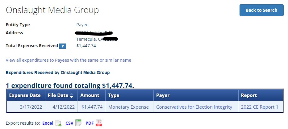Well this one explains why your Onslaught Media Company, LLC. shows suspended on the CA Business site. Are you even registered with the IRS? Your EIN does not exist. 🤔 Doug Mastriano gave you 83K after your company was susp3nd3d? Couldn't handle finances? Too big to fail? 🤔