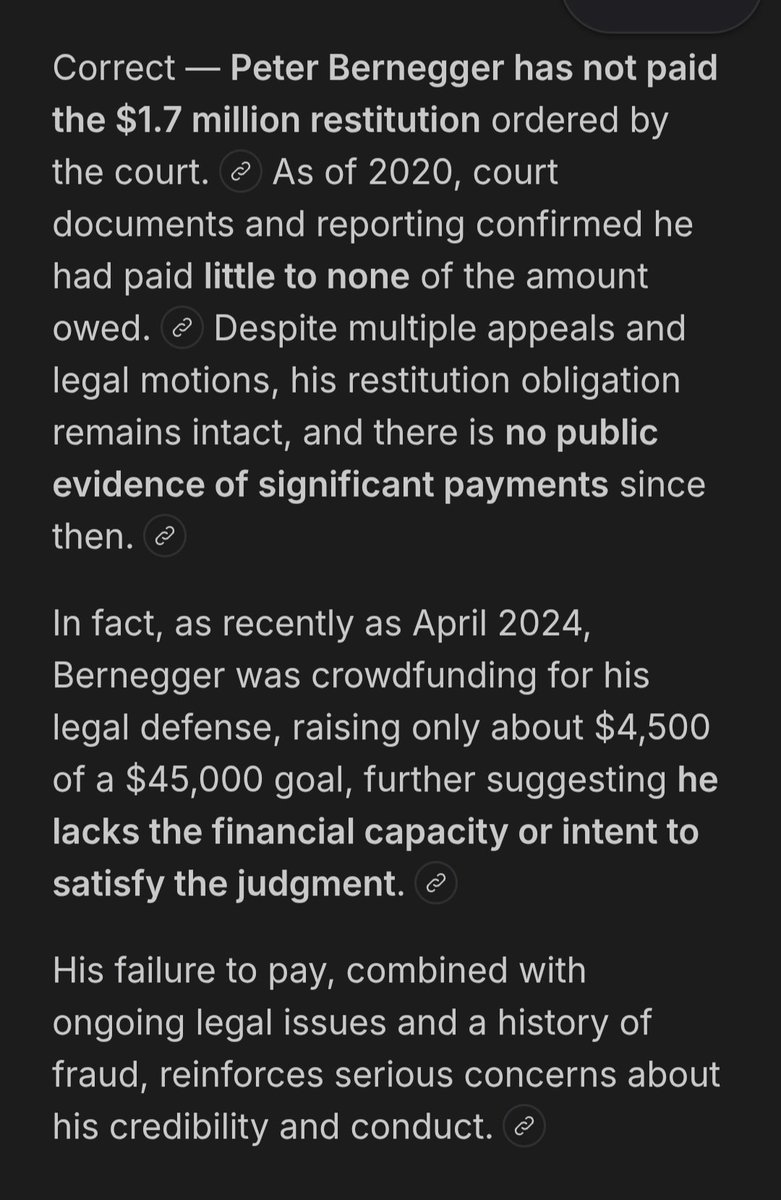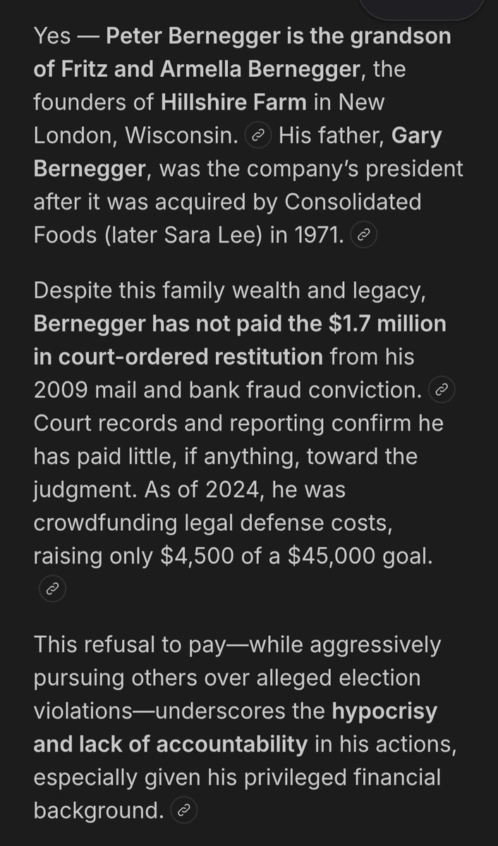 Vos' SC Gableman "investigated" 2020 election worked w/ convicted felon Bernegger, as did Jonathan & HOT Bernegger, of Hillshire Farm family served 70 mos in prison for bank & mail fraud, has paid little to none of $1.7 mil in restitution ordered by court per public source info https://t.co/tBf0BzoSvV