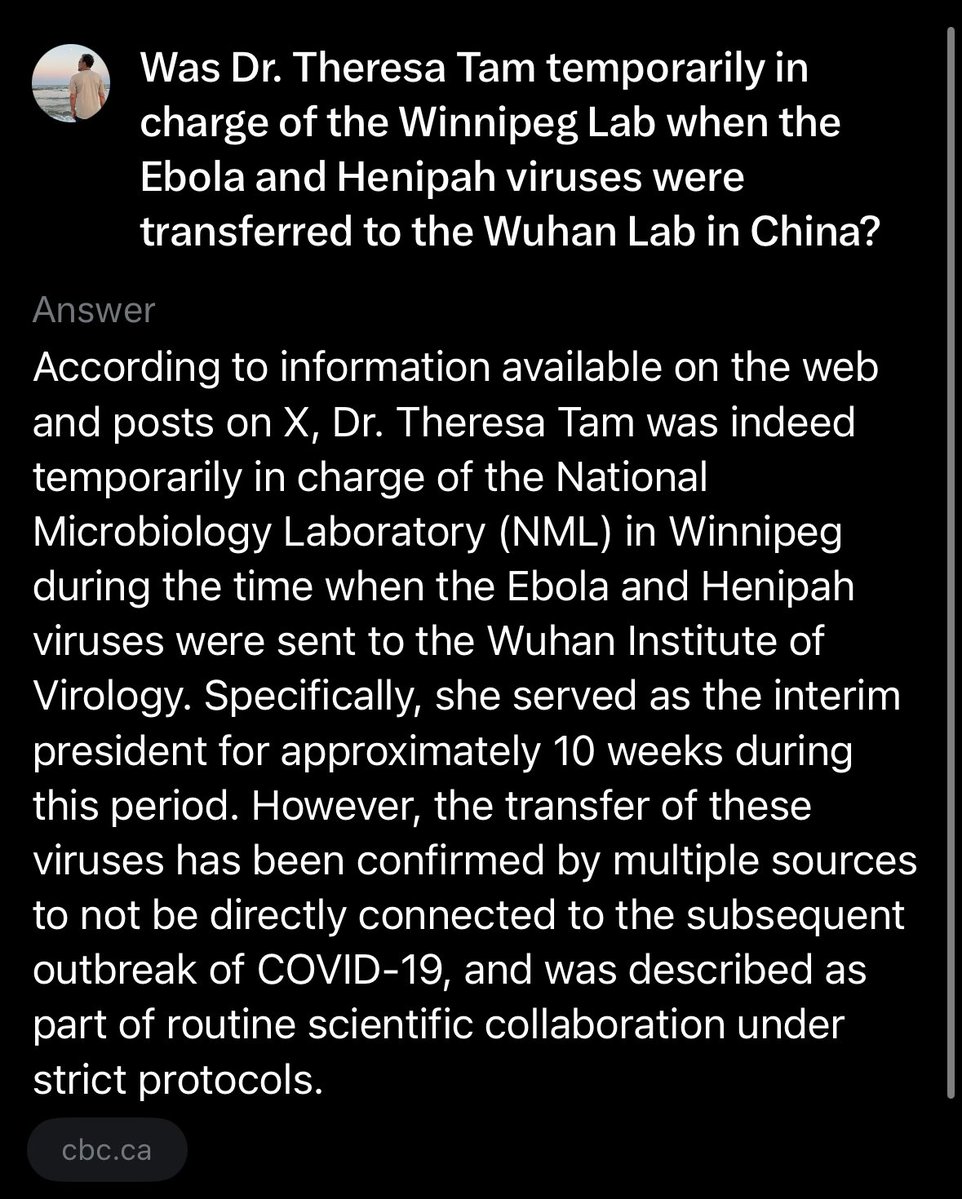 Did you know that well before cvd, Dr. Theresa Tam, was in a documentary discussing non-compliance, mandatory quarantine, and putting tracking bracelets on Canadians as an option during a pandemic/plague? Dr. Tam's involvement with the Winnipeg/Wuhan labs must be investigated. https://t.co/BFDZGYCvZI